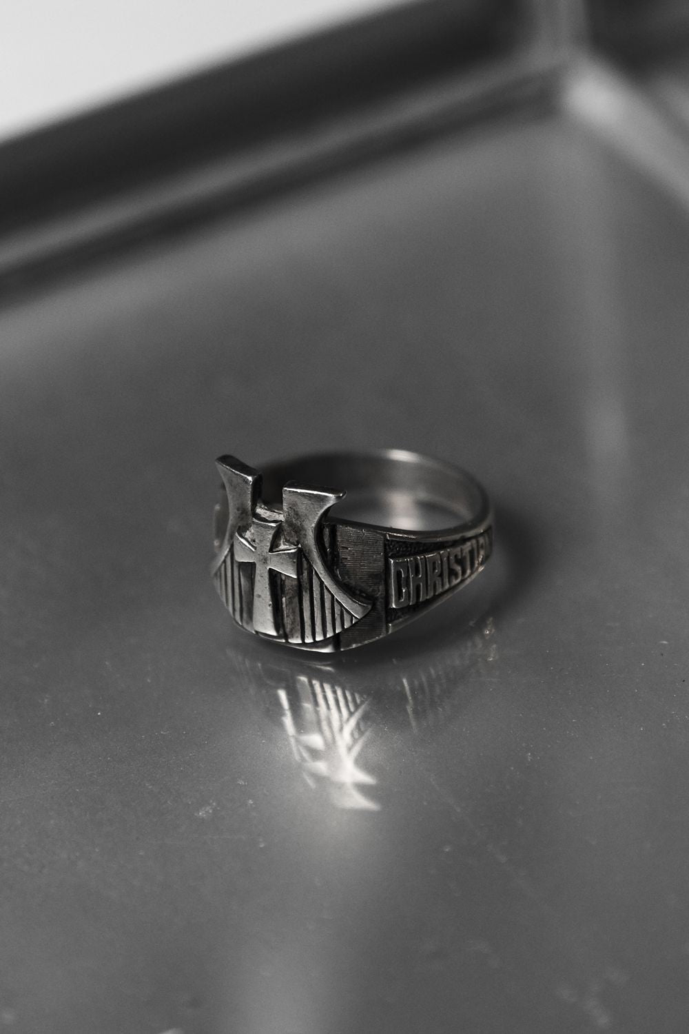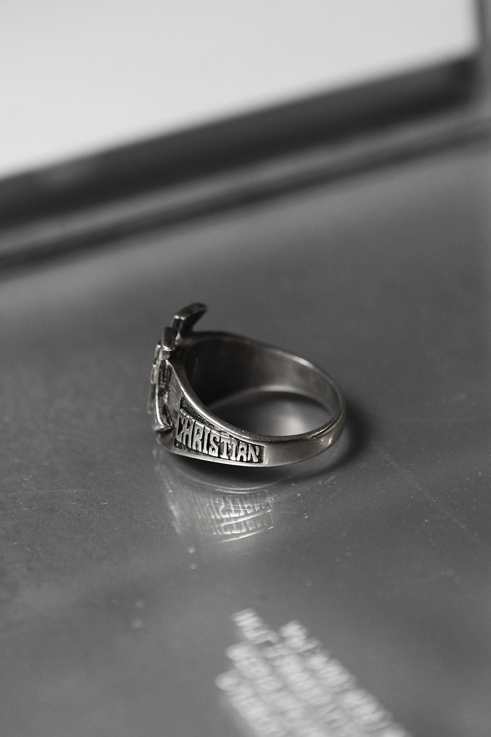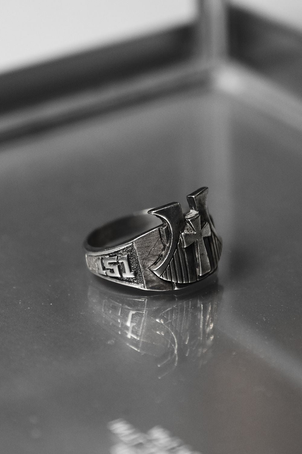 925 Sterling Christian Cross Shield Ring with Number 151 十字架盾牌戒 刻印Christian/151