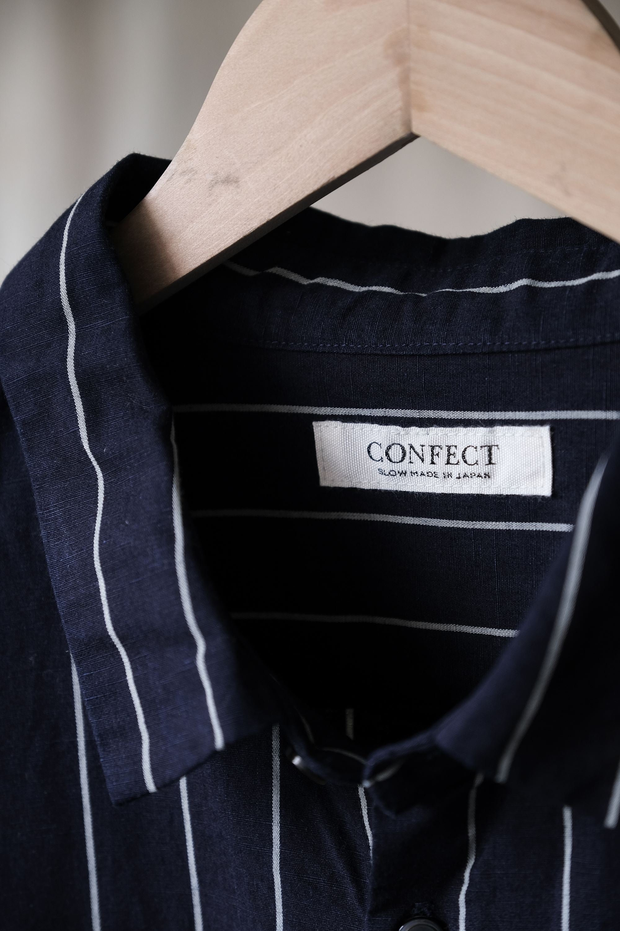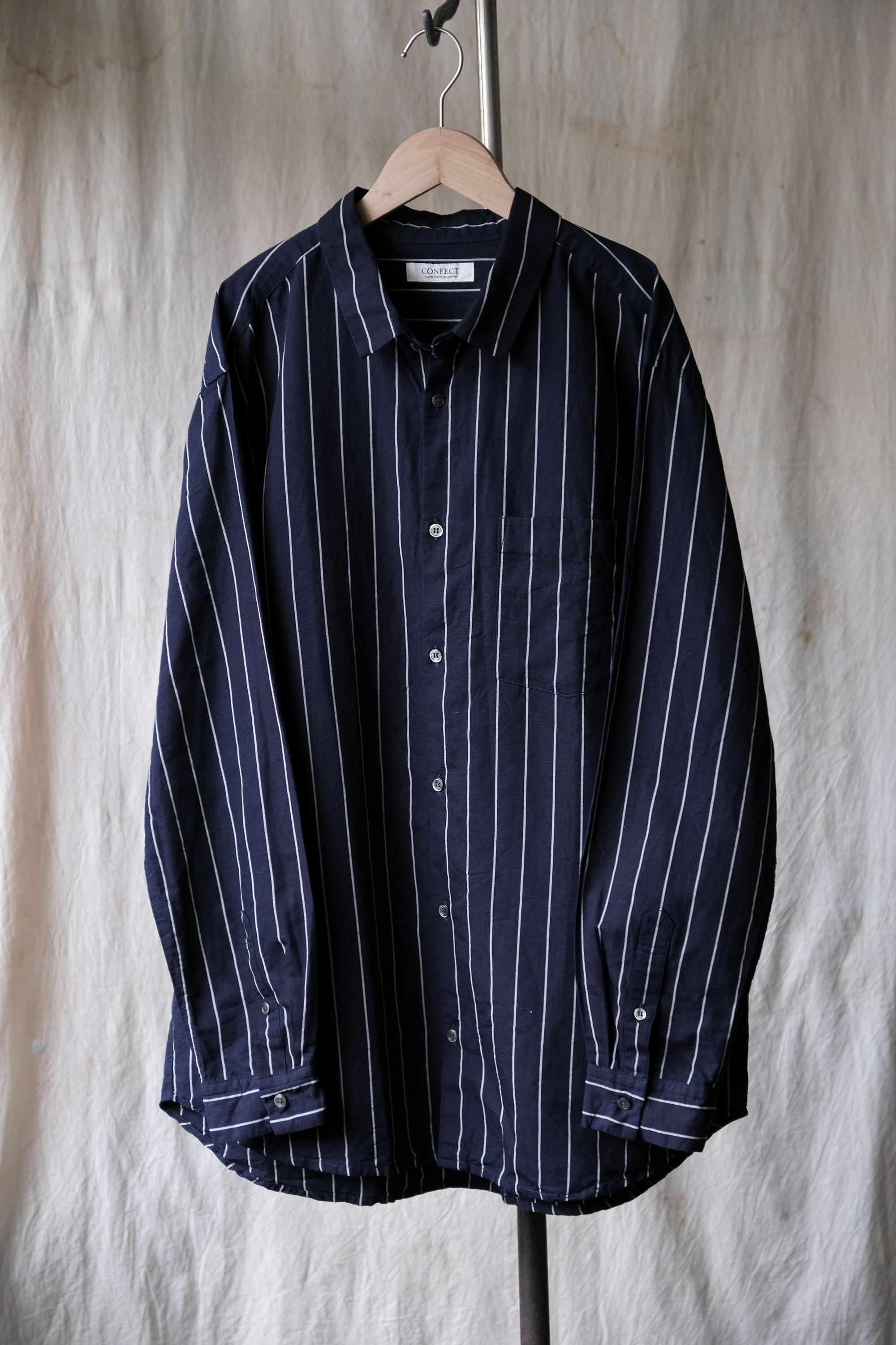 CONFECT nest Robe Cotton Linen Indigo Striped Weather Cloth ShirtJapanese designer brand indigo-dyed cotton and linen striped shirt