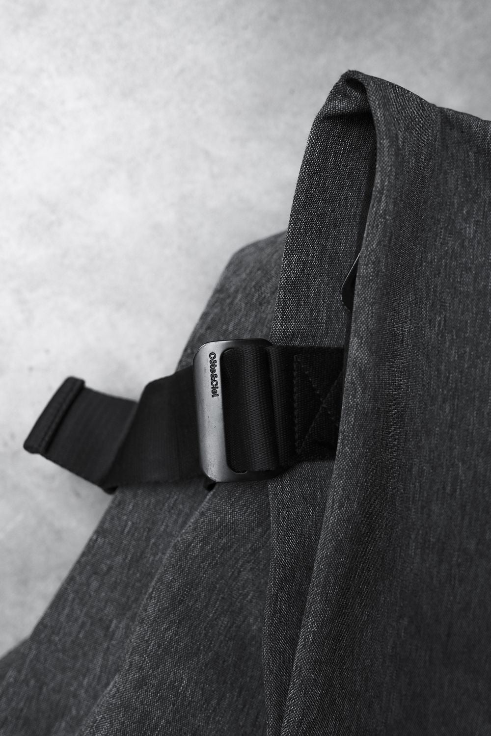 Côte&Ciel Isar Backpack, a French fashion and functional bag brand, features a waterproof canvas backpack in heather gray.