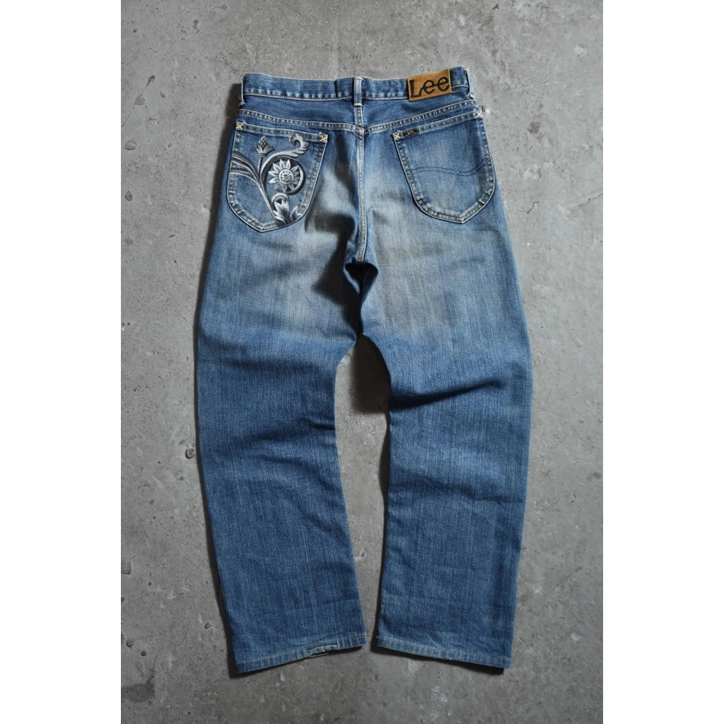 Lee Vintage Hand Painted Denim Jeans Baroque Style Vintage Hand Painted Baroque Style Madonna Jeans Made in Japan