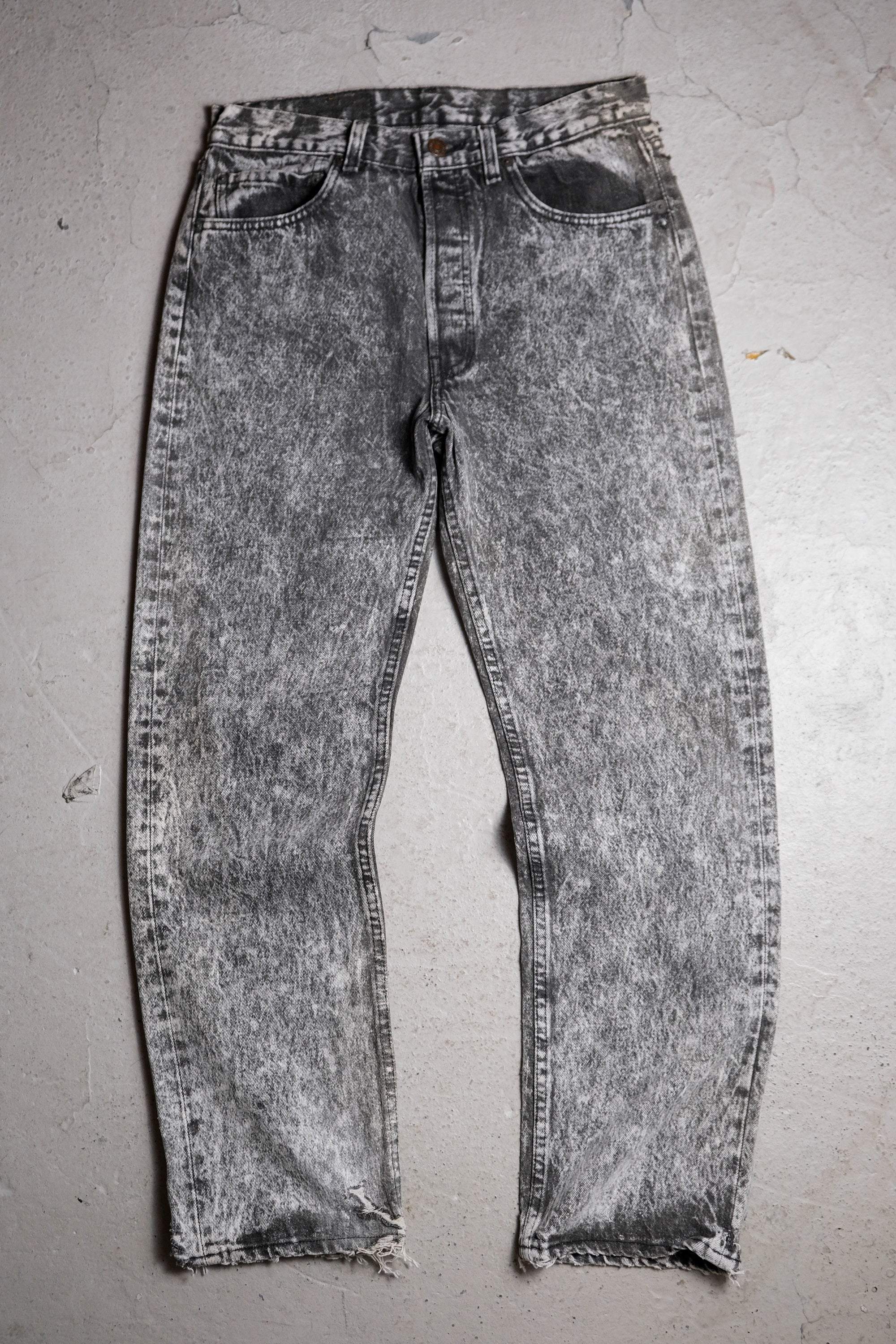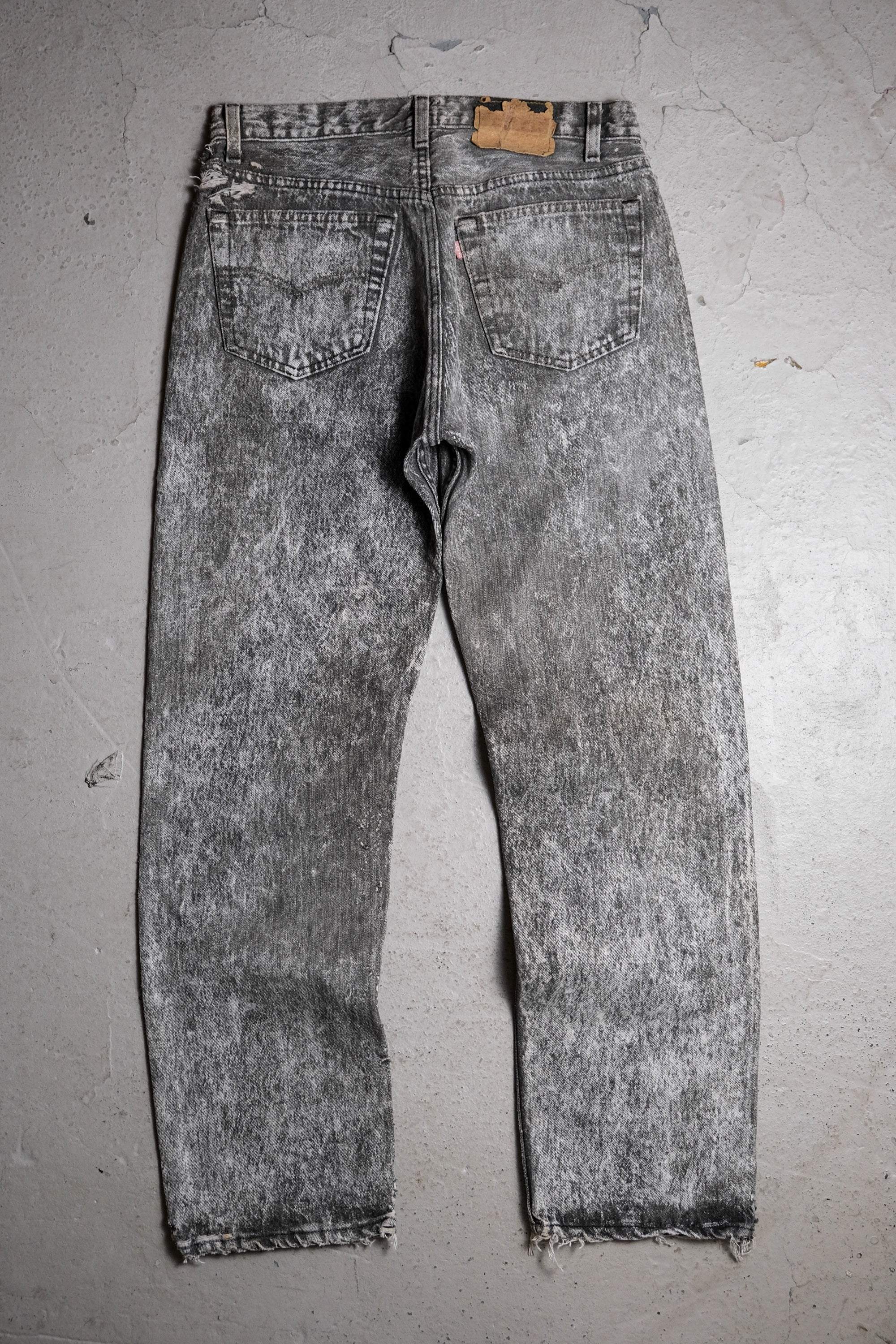 Levi's 80's Vintage 501 Snowflake Grey Denim Jeans Early American-made snowflake grey denim straight pants