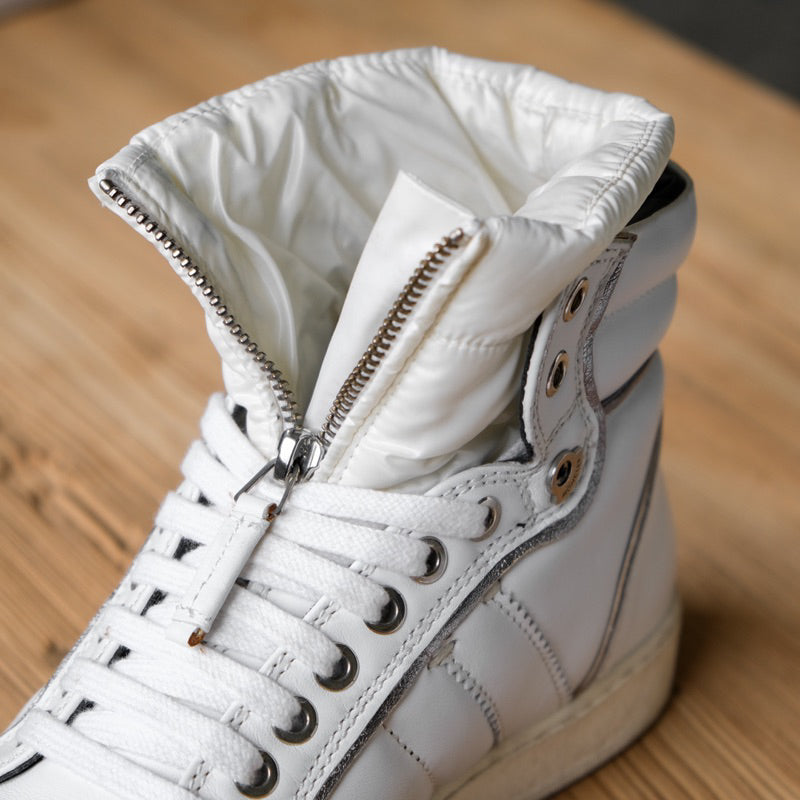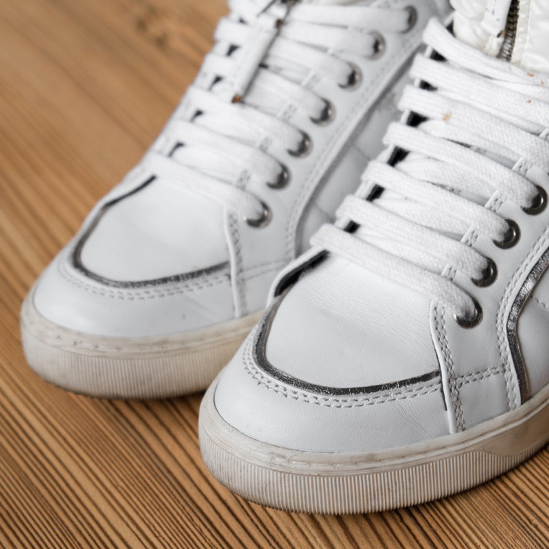 MONCLER Leather High Top Sneaker - White French boutique brand white high-top sneakers