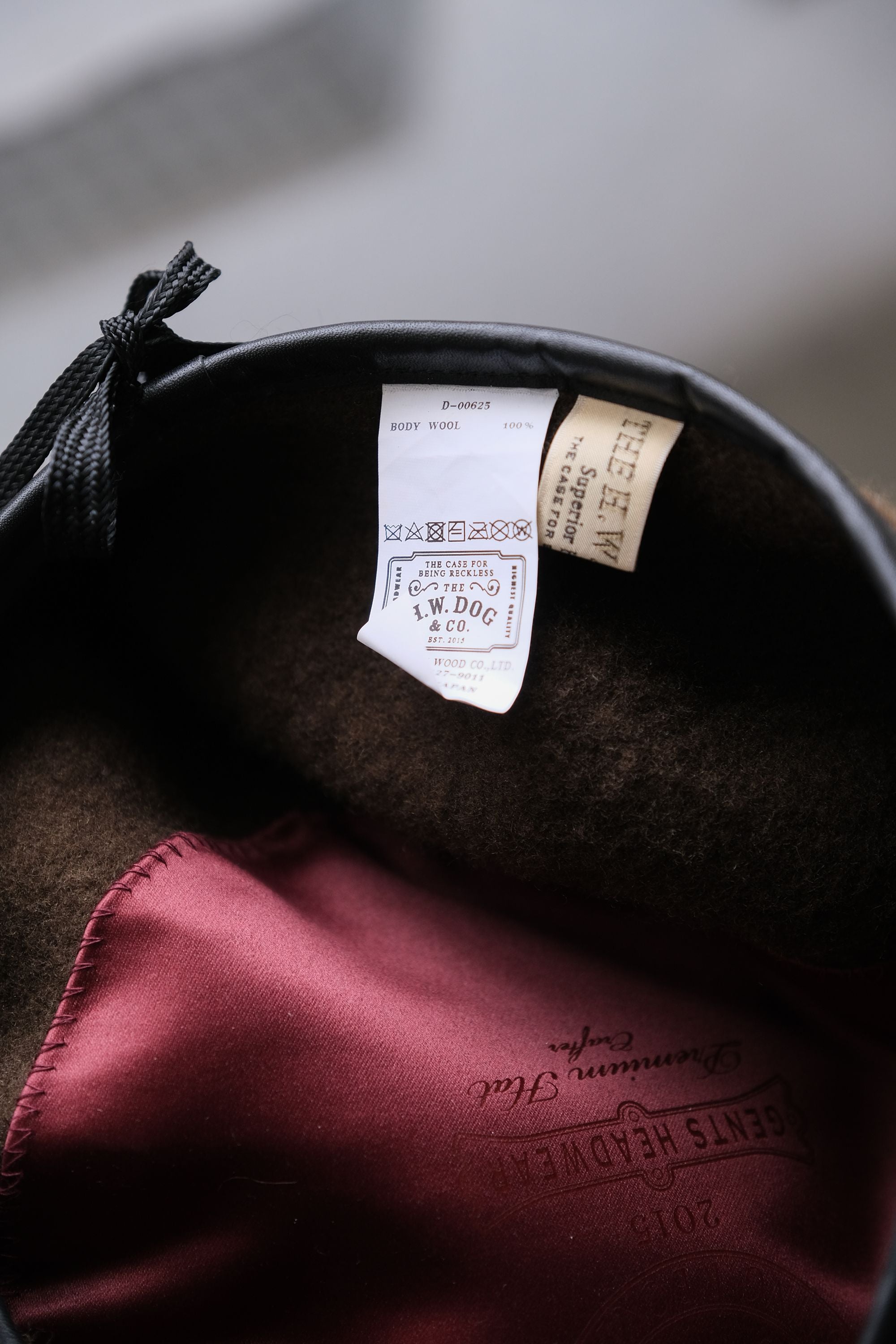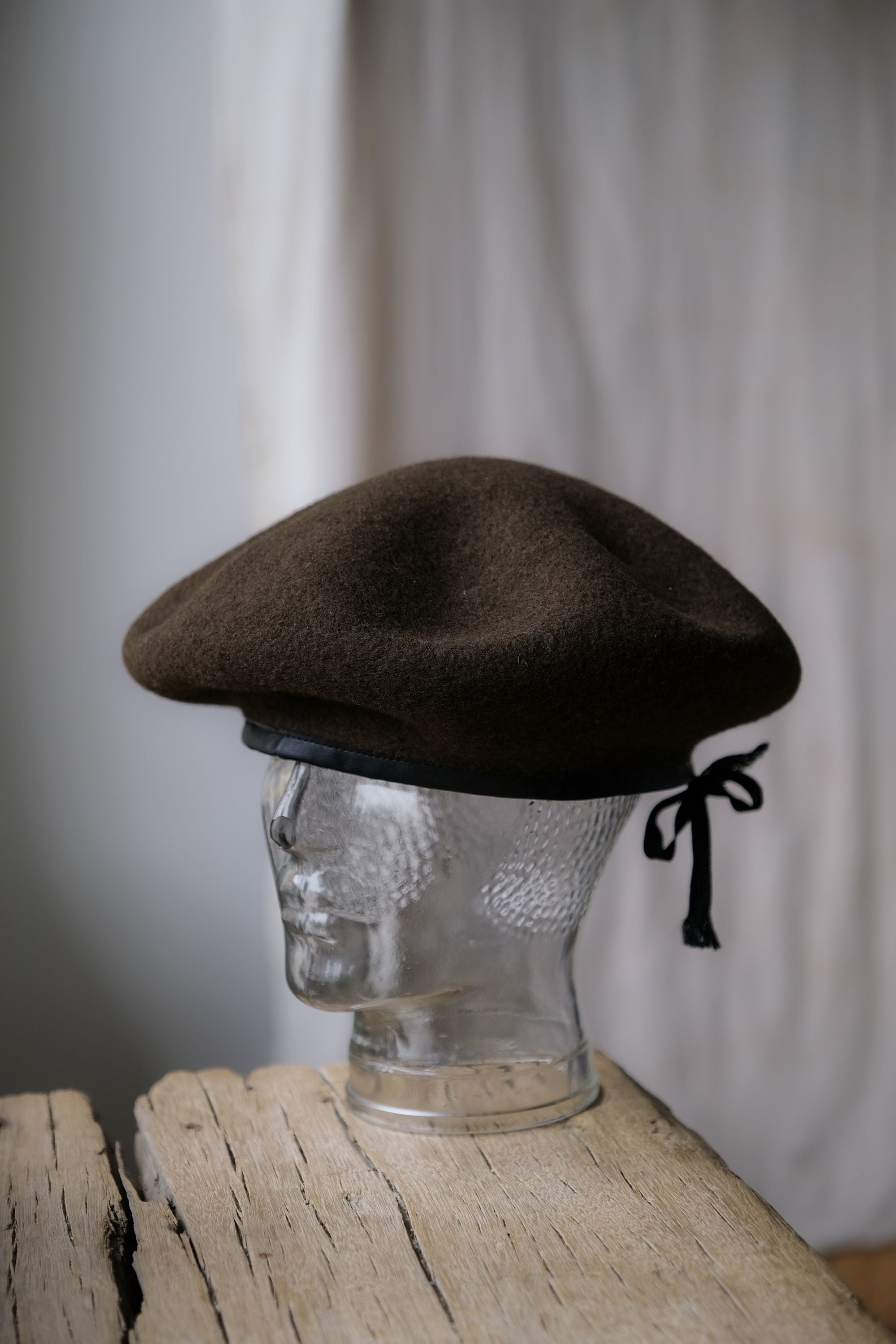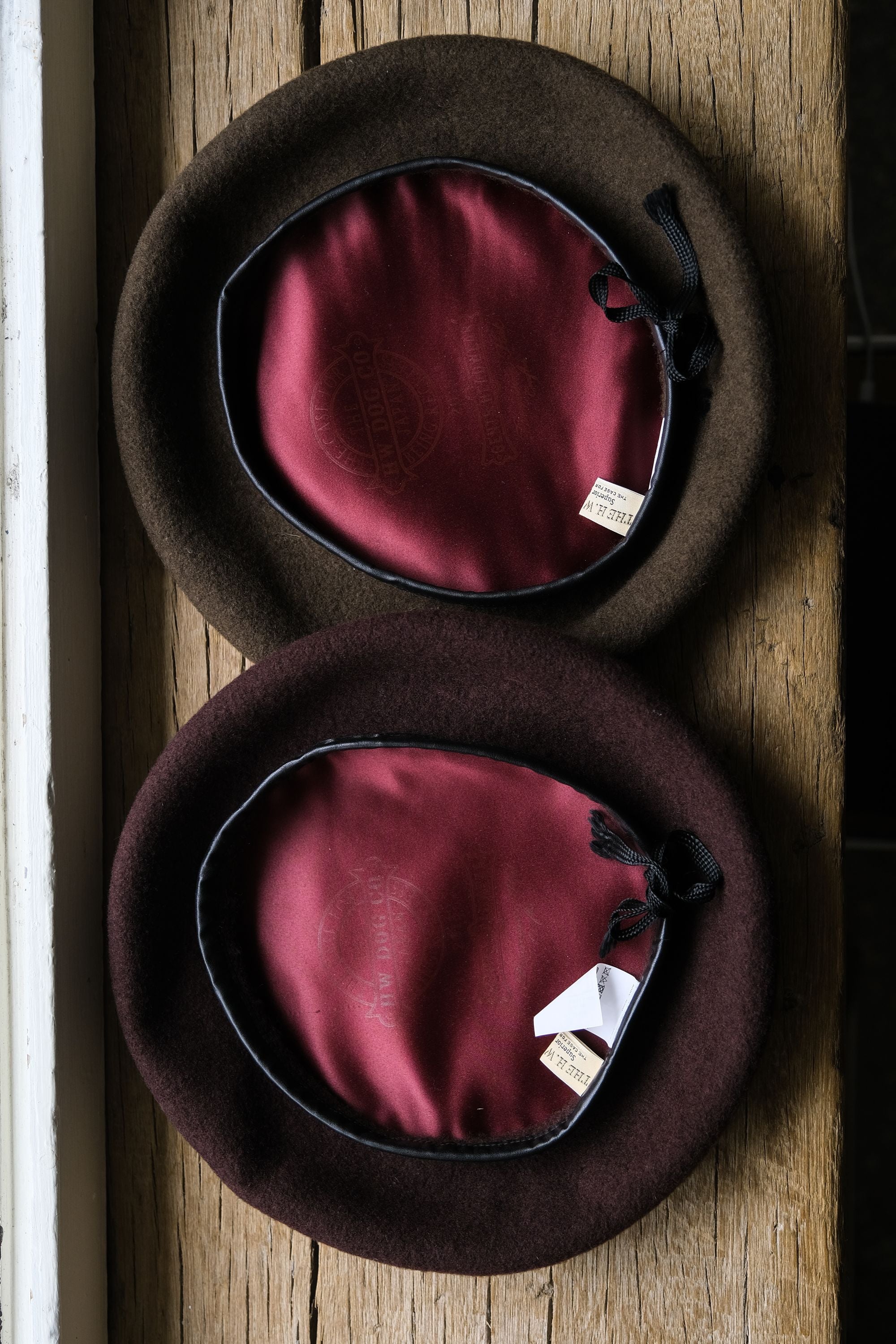 THE HW DOG & CO D-00625 LEATHER BERET leather-trimmed wool beret military green /coffee