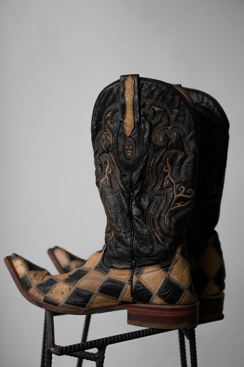Vintage 2-Tone Argyle Cowboy Western Boots