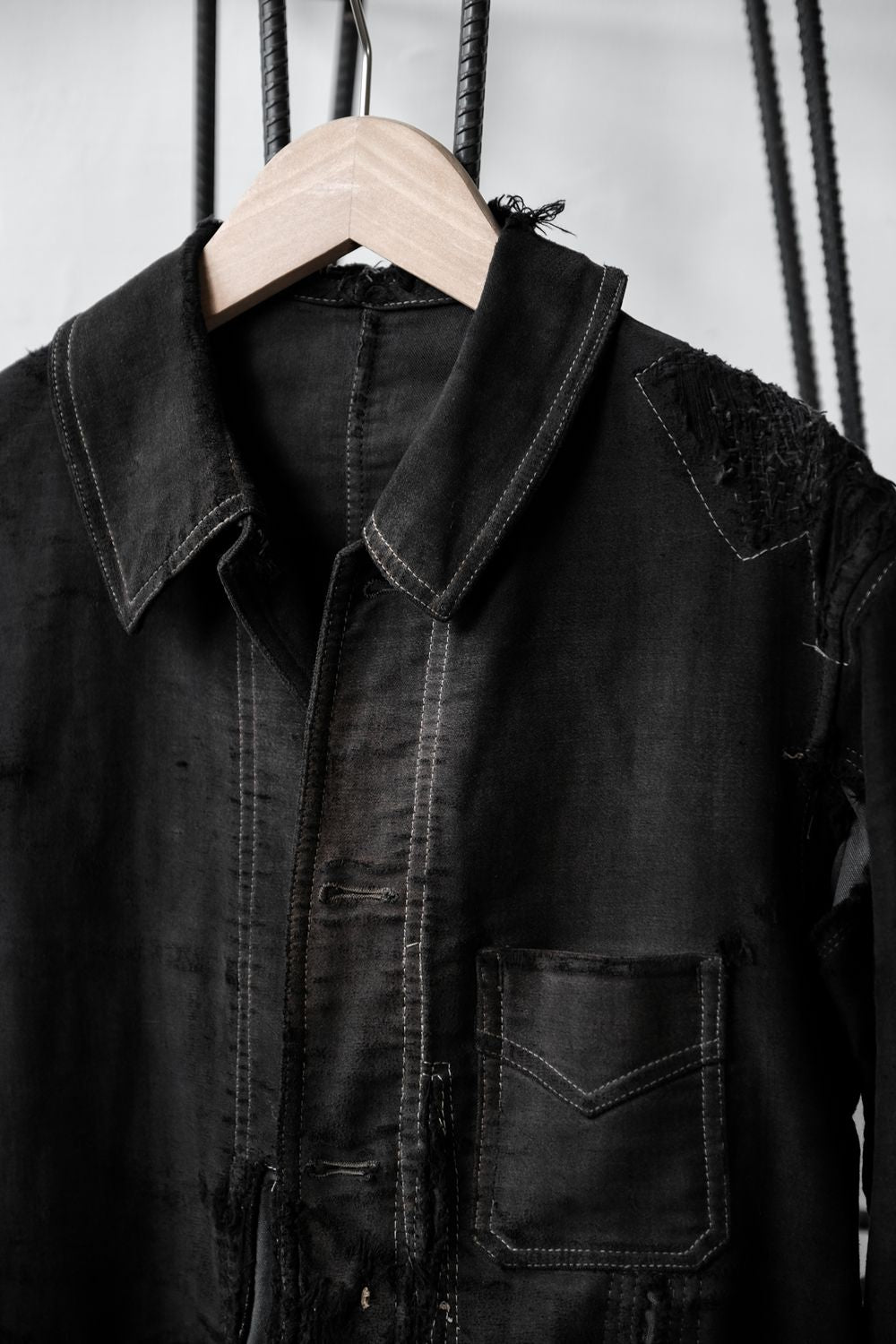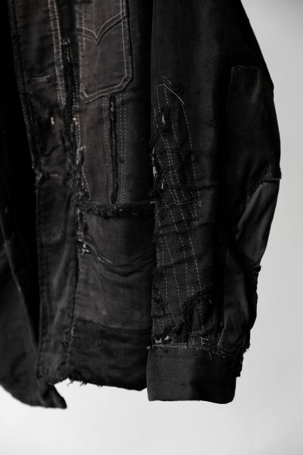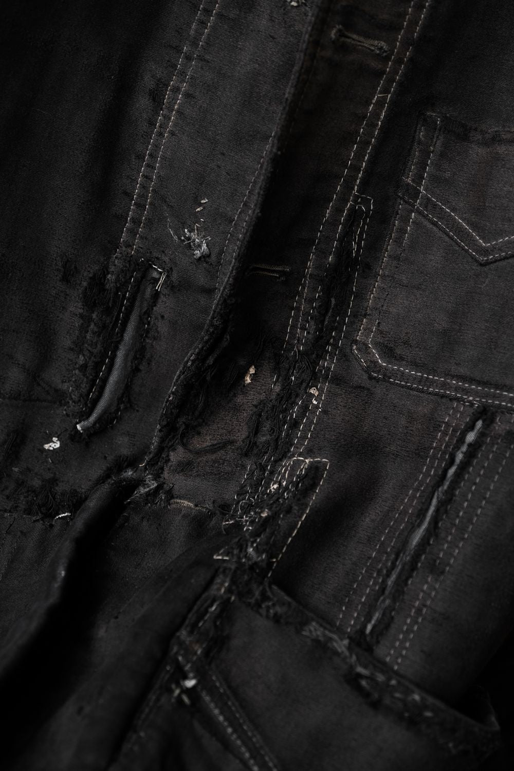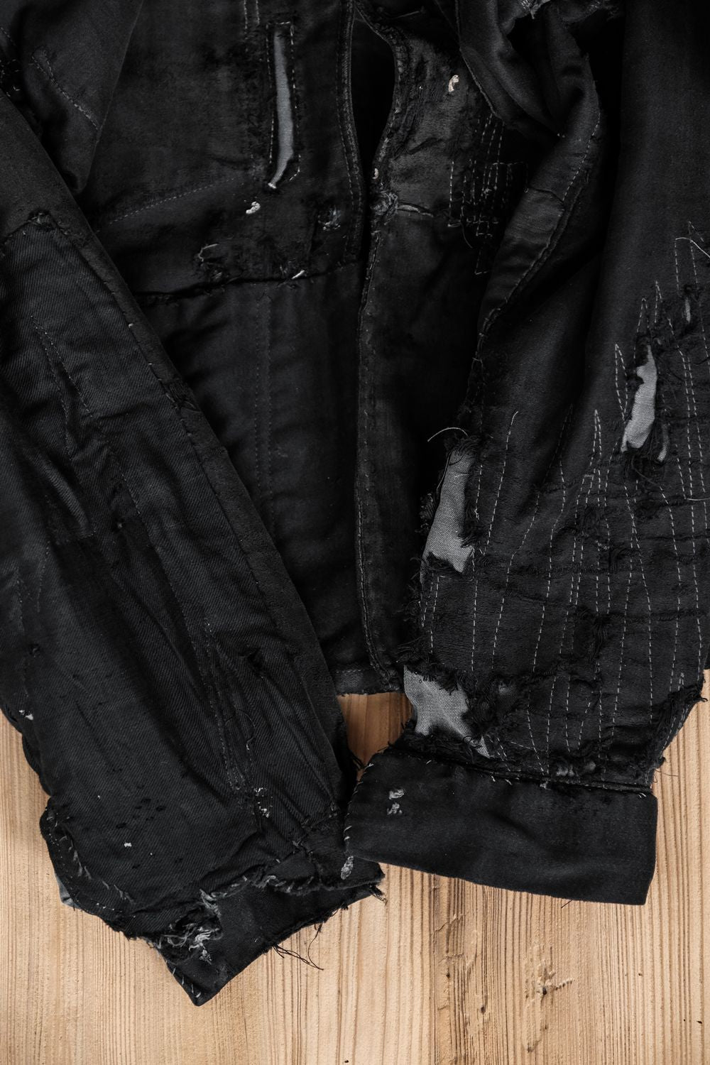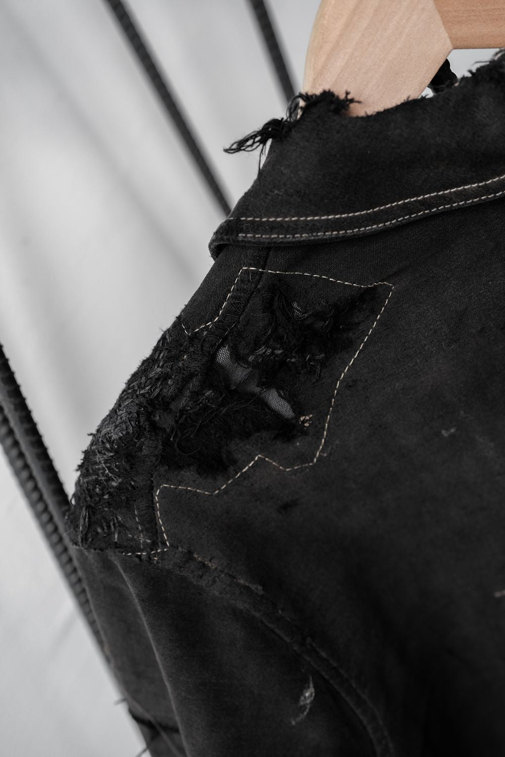*重厚なステッチと補修、ボタンなし