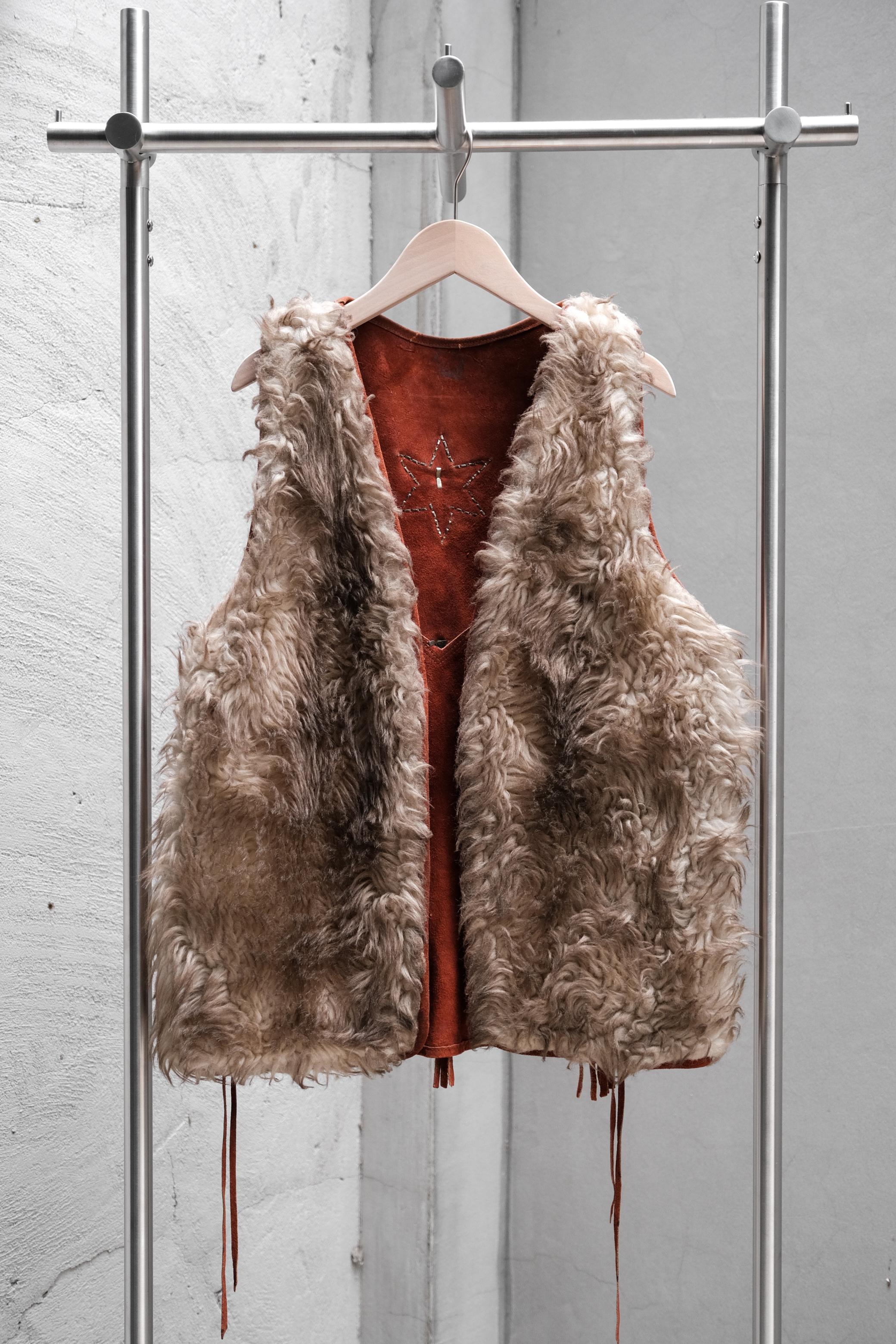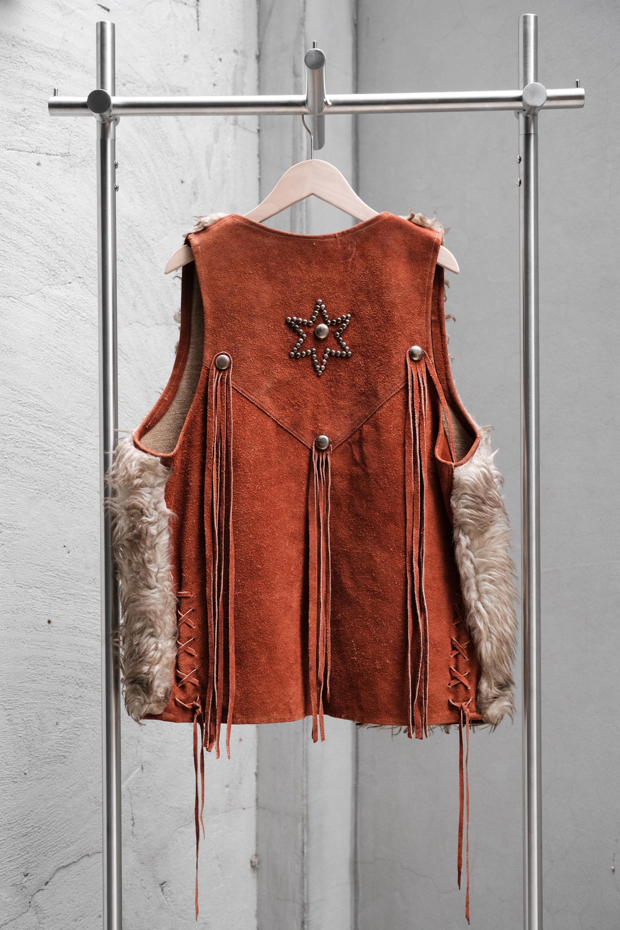 1960~70’s Vintage Faux Fur Suede Leather Vest with Studded Fringe 古著 人造皮草麂皮流蘇嬉皮背心