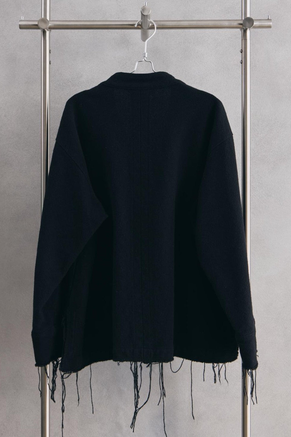 ANCELLM W/S COLLARLESS JACKET -BLACK 日本設計師品牌 羊毛混絲無領開襟抽鬚外套