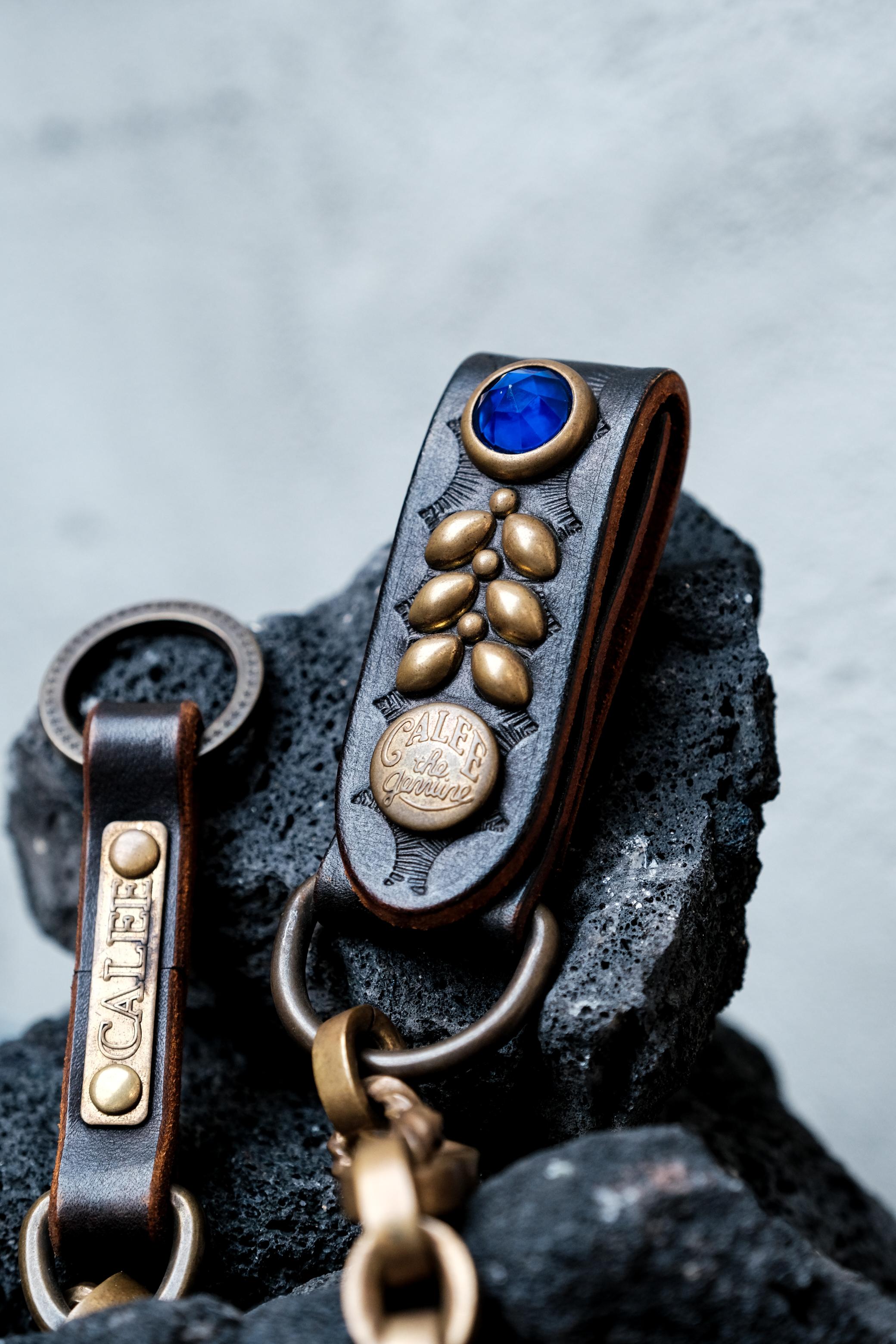 CALEE Studded Leather Wallet Chain BLUE 日系復古美式品牌 藍寶石鉚釘皮革腰鍊