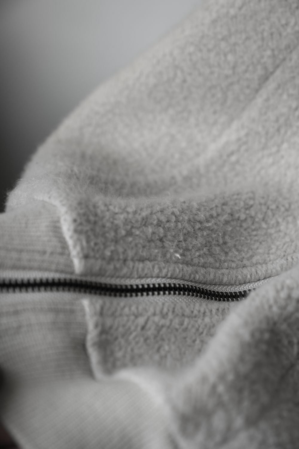 この生地は100%コーマ綿を使用し、生地の裏面を細かく起毛させることで、一般的な起毛加工よりも繊細で精巧な仕上がりになっています。細かく加工された起毛面は、柔らかな風合いとややナチュラルな凹凸感があり、毛羽立ちや毛玉ができにくく、上質な風合いを醸し出しています。