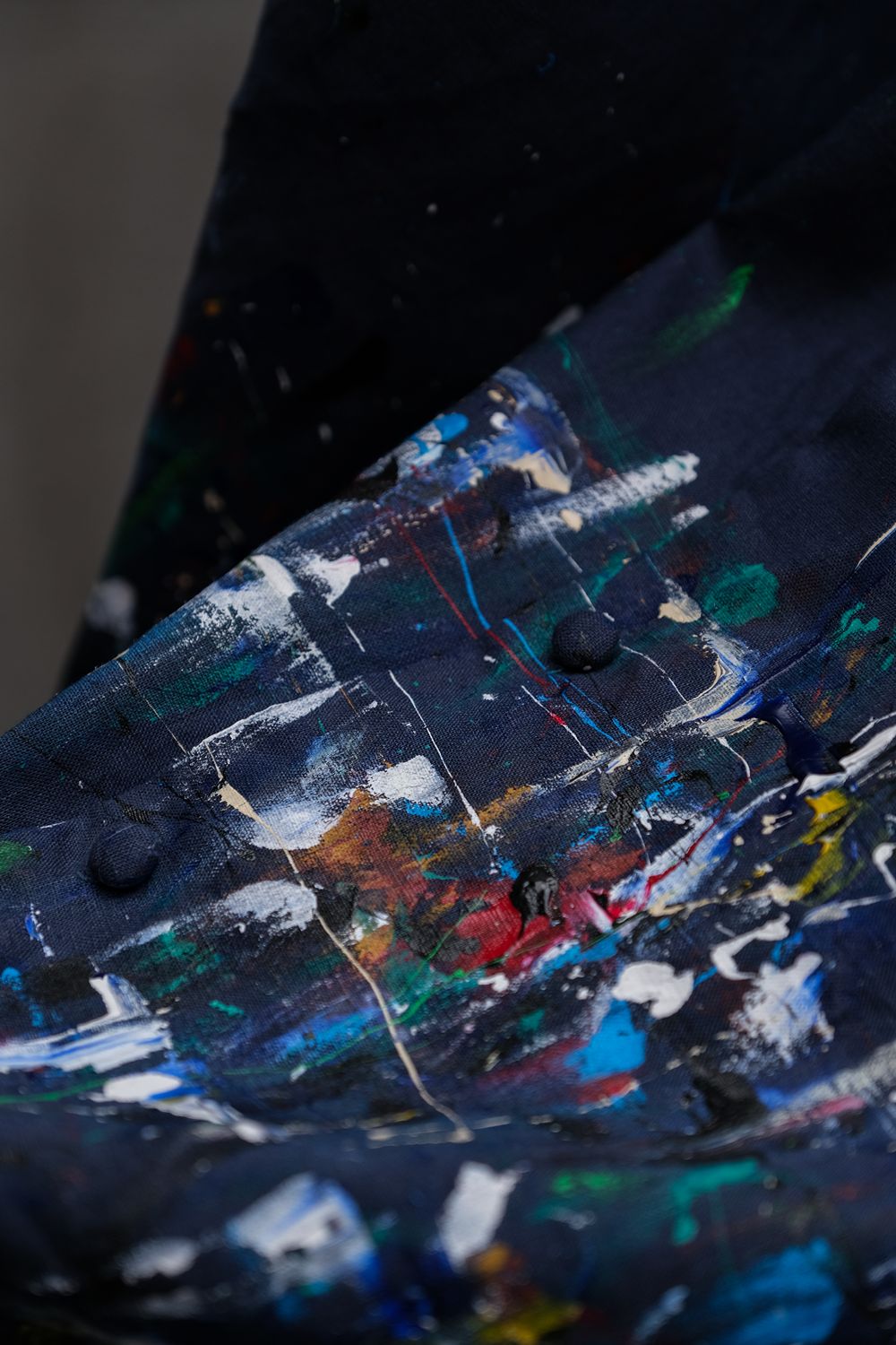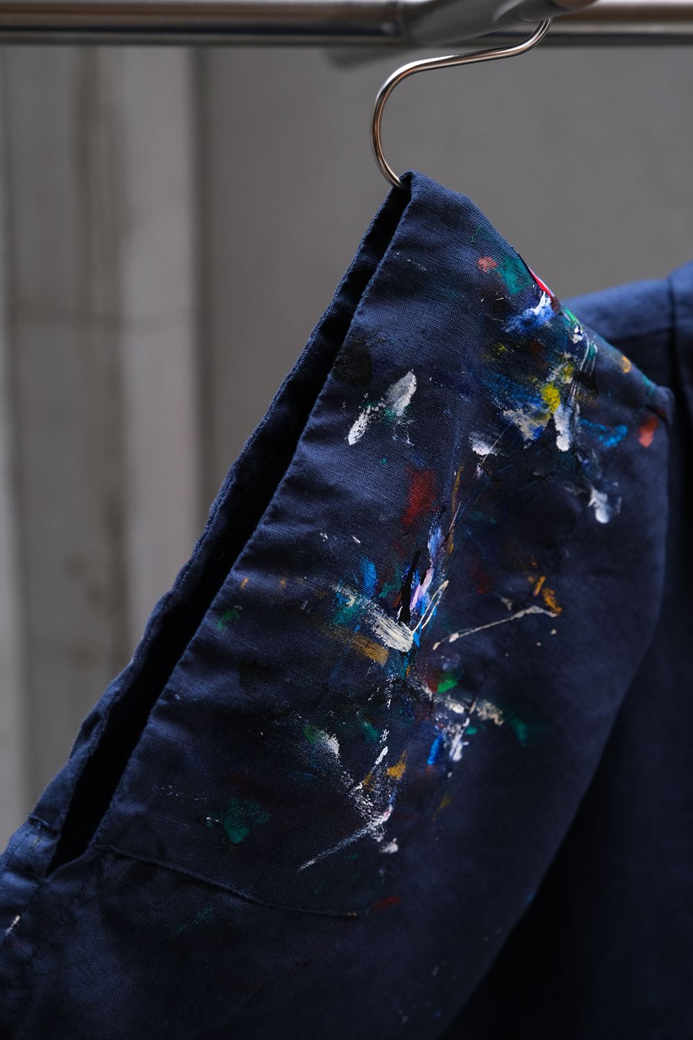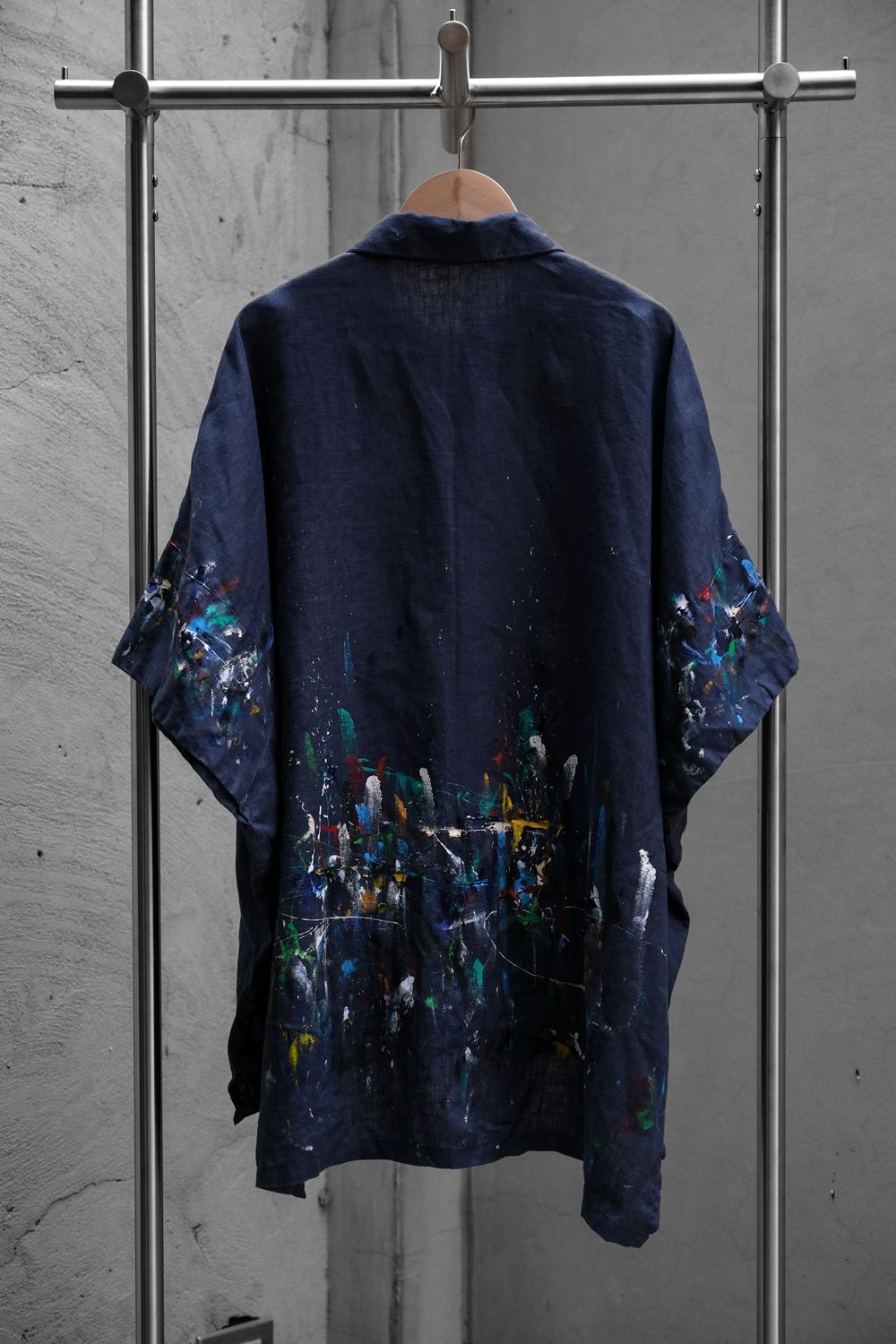 11月27日(金)スプラッターペイントリネンケープシャツ(タイのデザイナーブランド)ダークブルーのコットンリネンケープシャツ