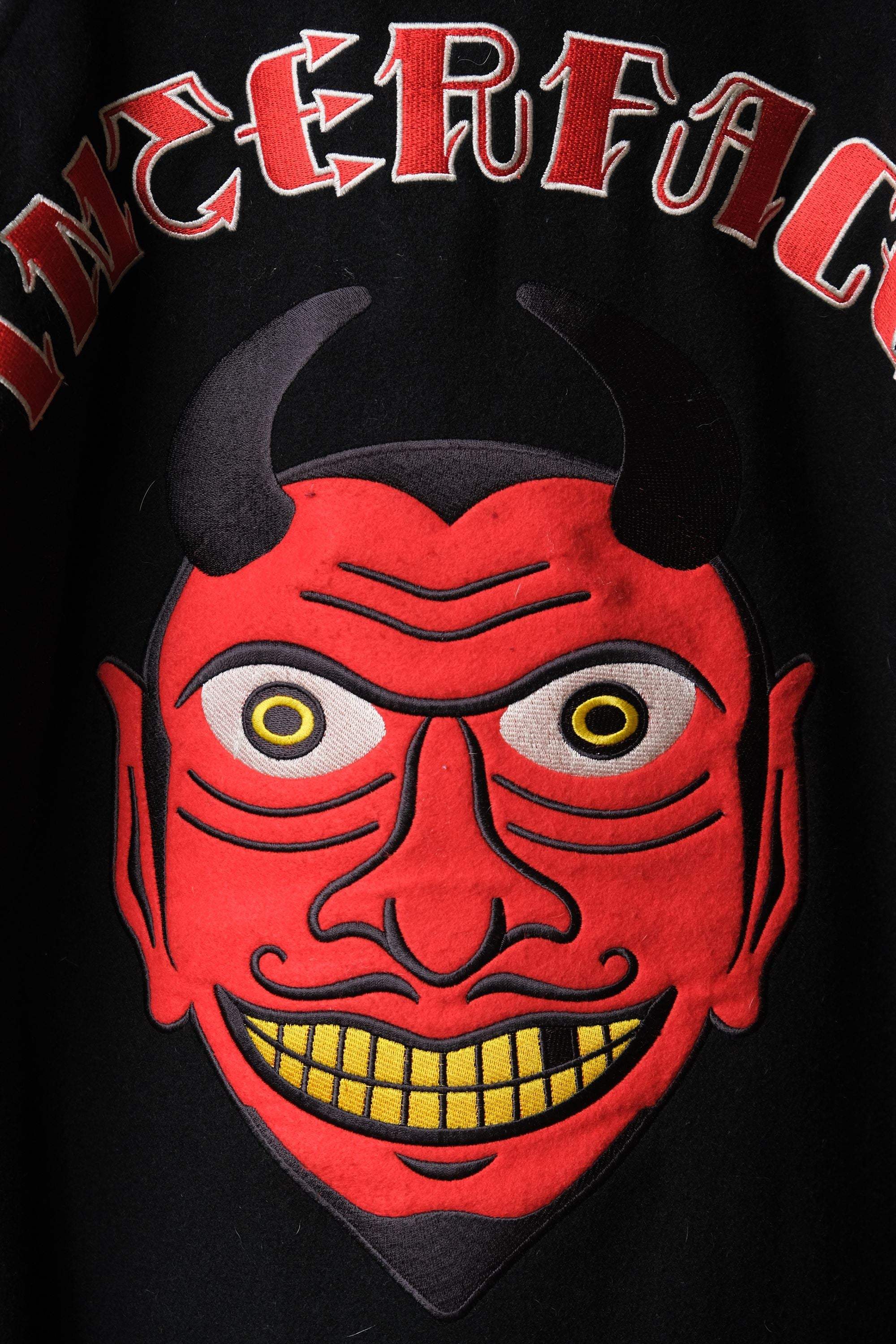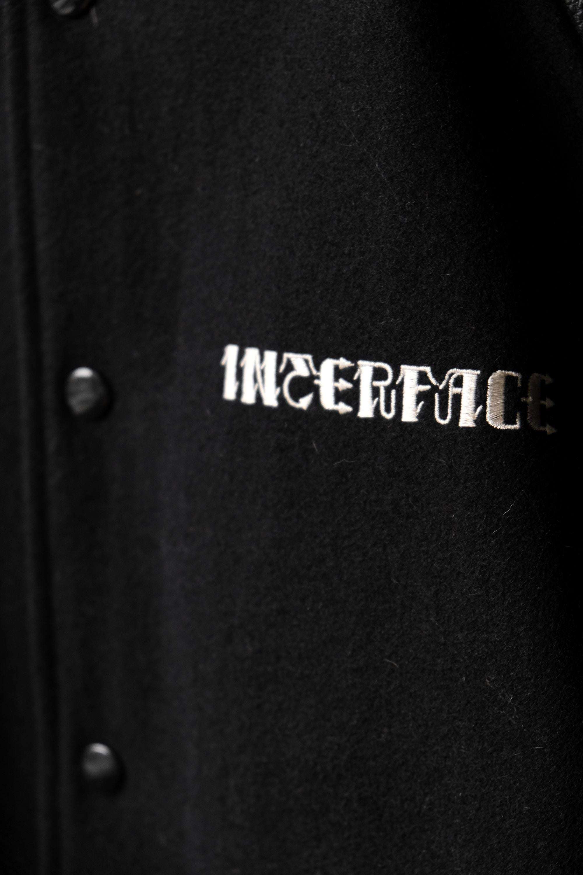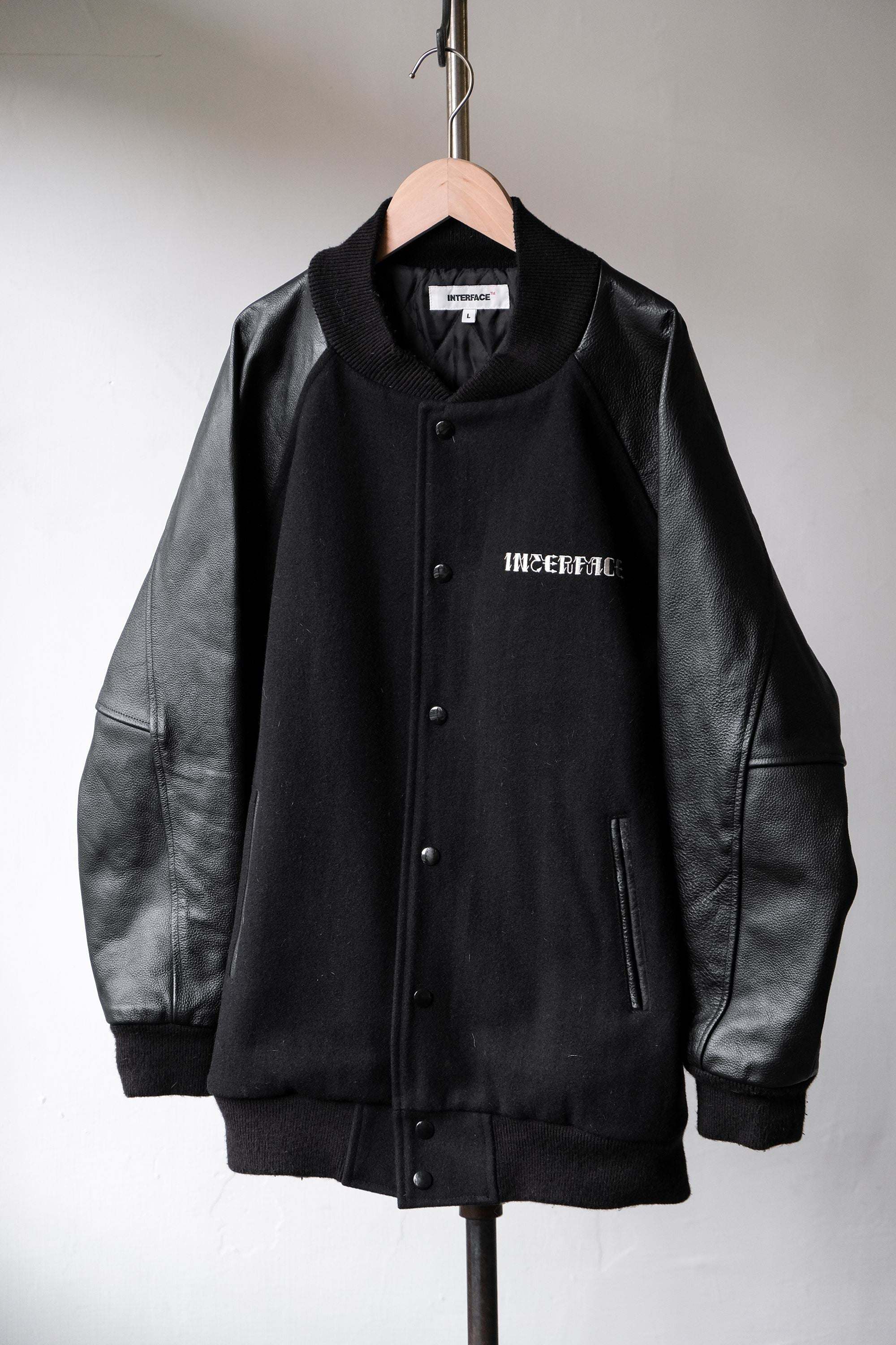 インターフェース刺繍レザーベースボールジャケット日本ブランドレザースリーブベースボールジャケット
