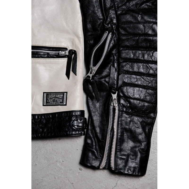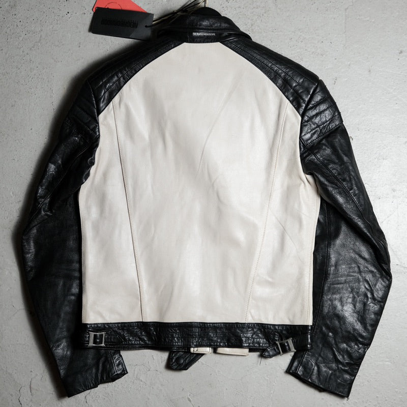 ネイバーフッド 08F/W ゴートレザー ブリッツ ジャケット 滝沢伸介の初期のシープスキン ツートン ナイト レザー ジャケット 日本製