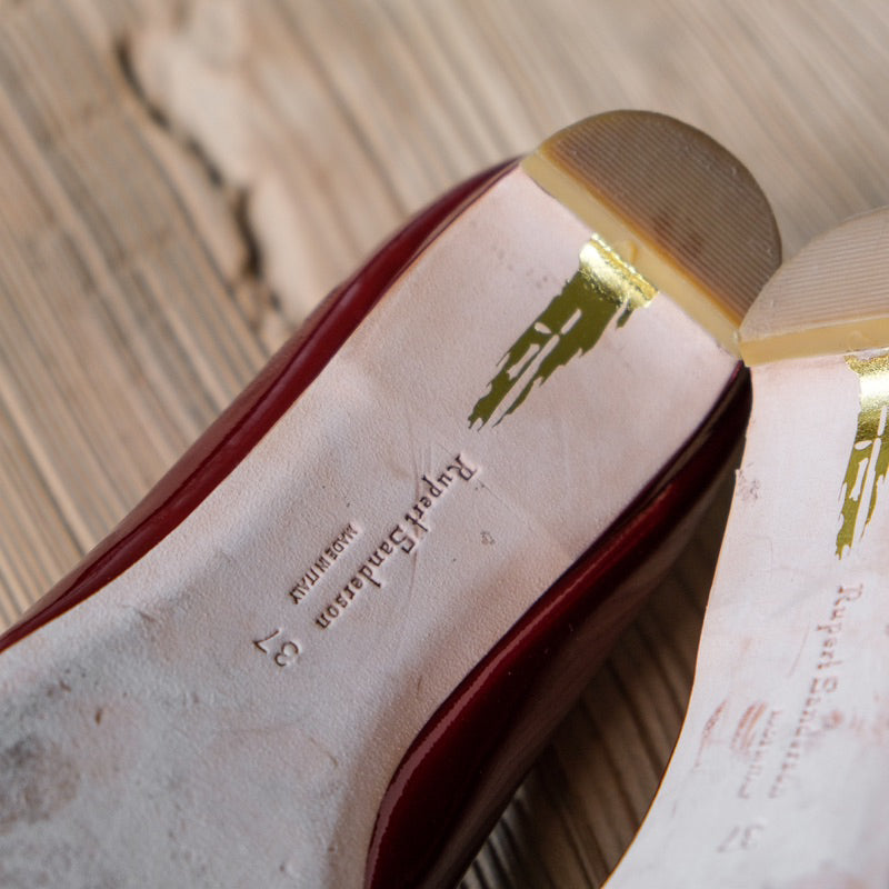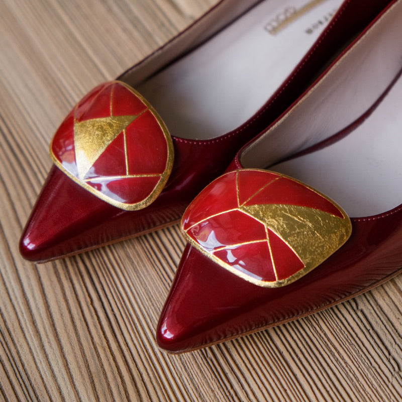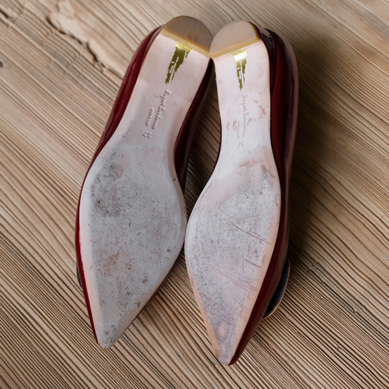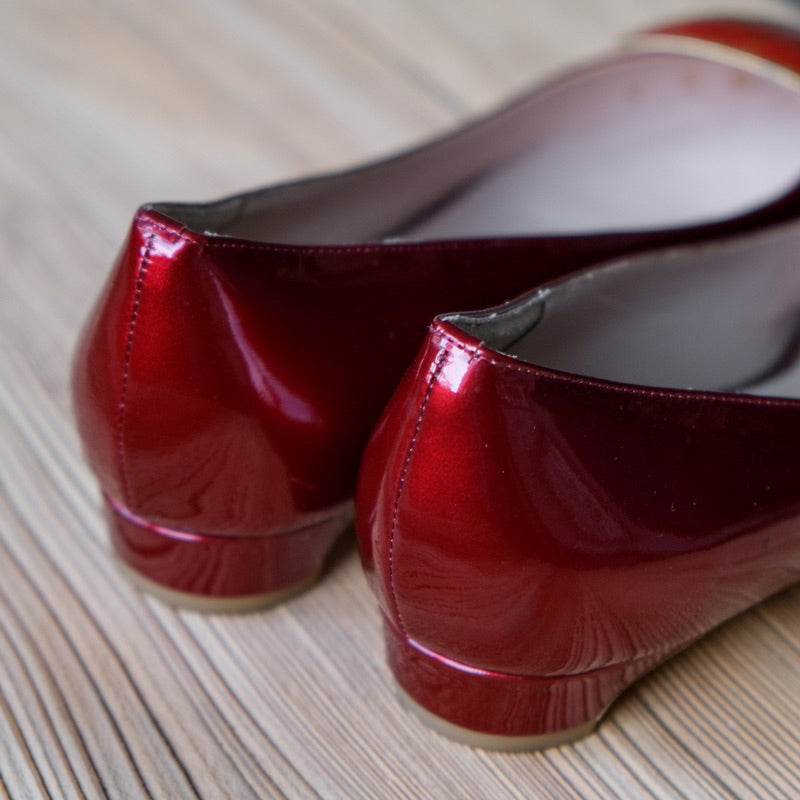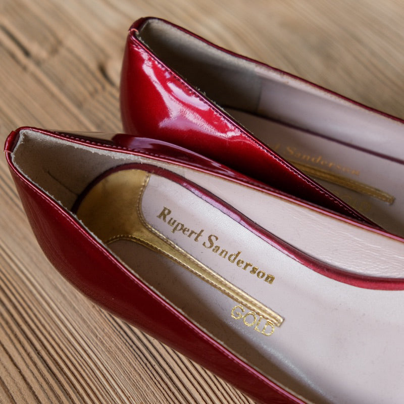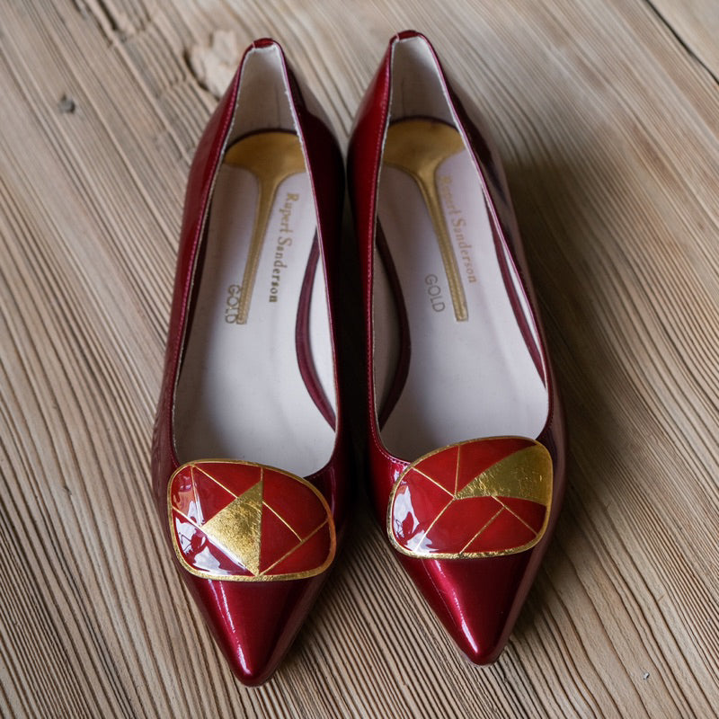 ルパート・サンダーソン ベッドファ レザーフラット - ゴールドレッド イギリスの靴デザイナーによるレッドとゴールドのカラーマッチングレザーフラット