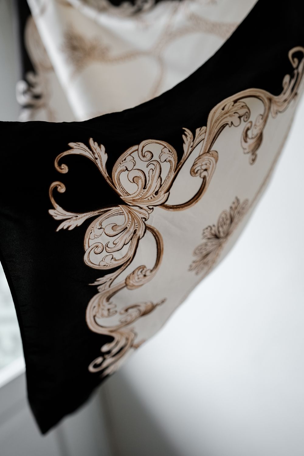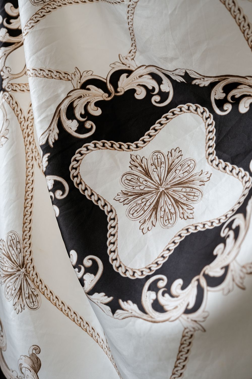 ヴィンテージ バロック プリント シルク スカーフ バロック プリント シルク スカーフブラック & ホワイト ゴールド