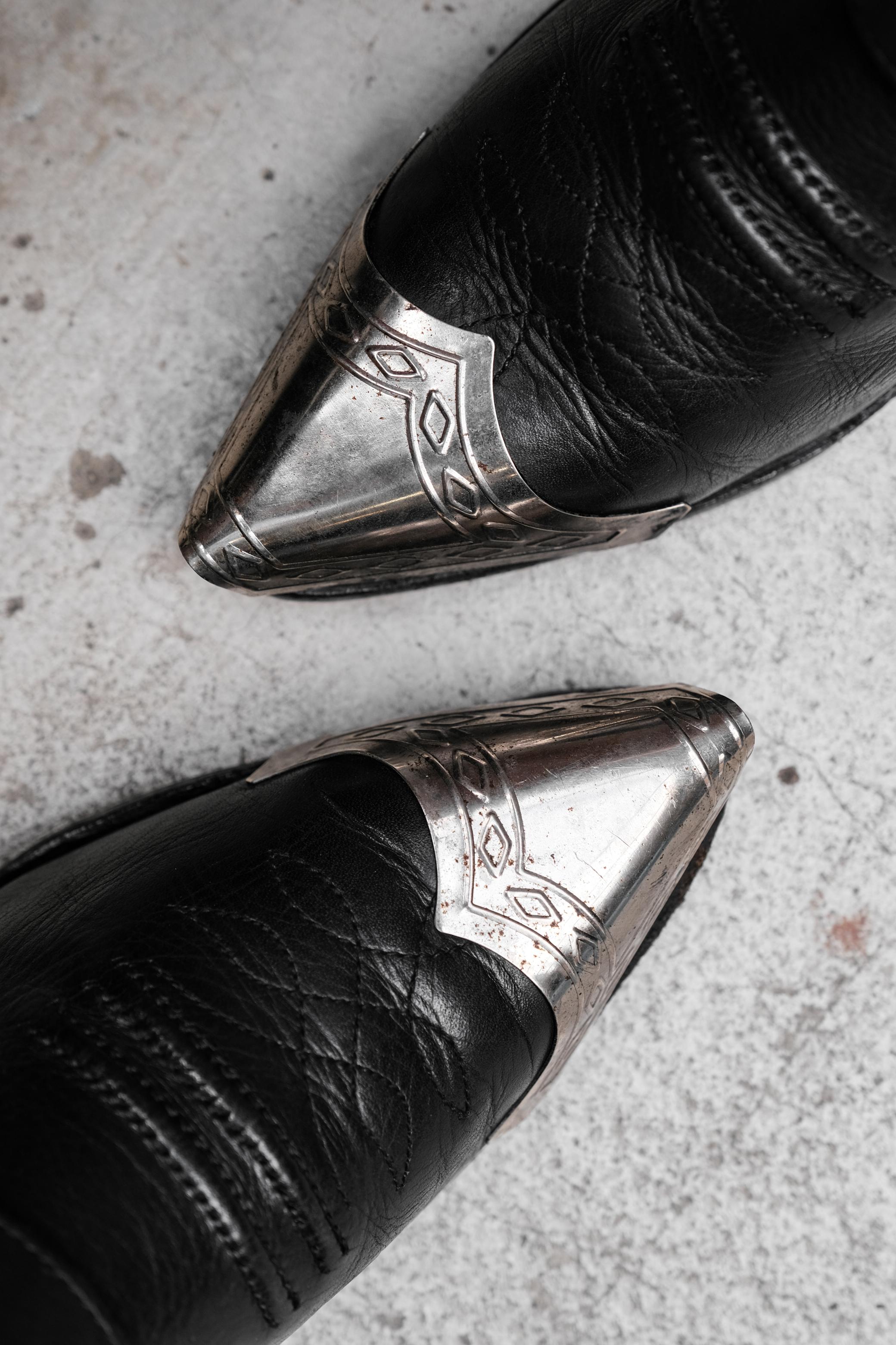 Vintage Leather Strap Silver Toe Shoes 古著金屬包頭尖頭西部皮鞋