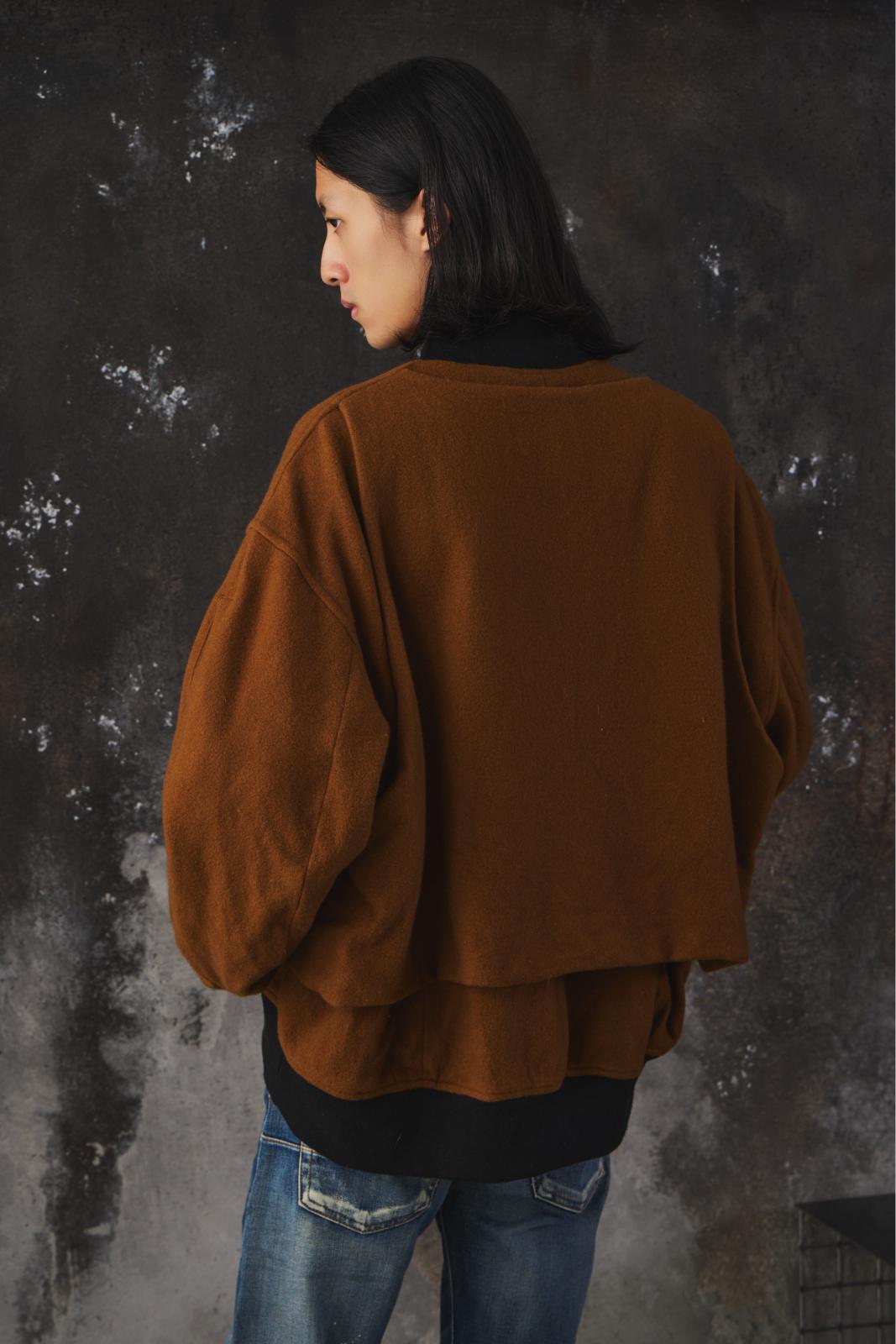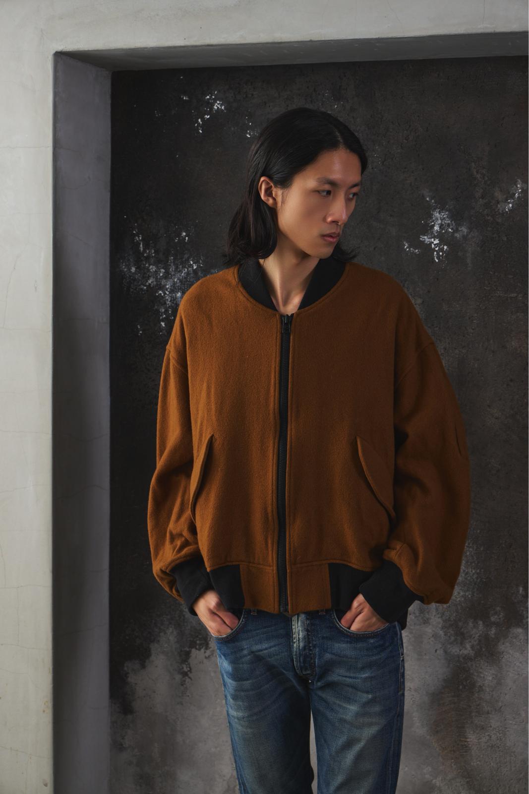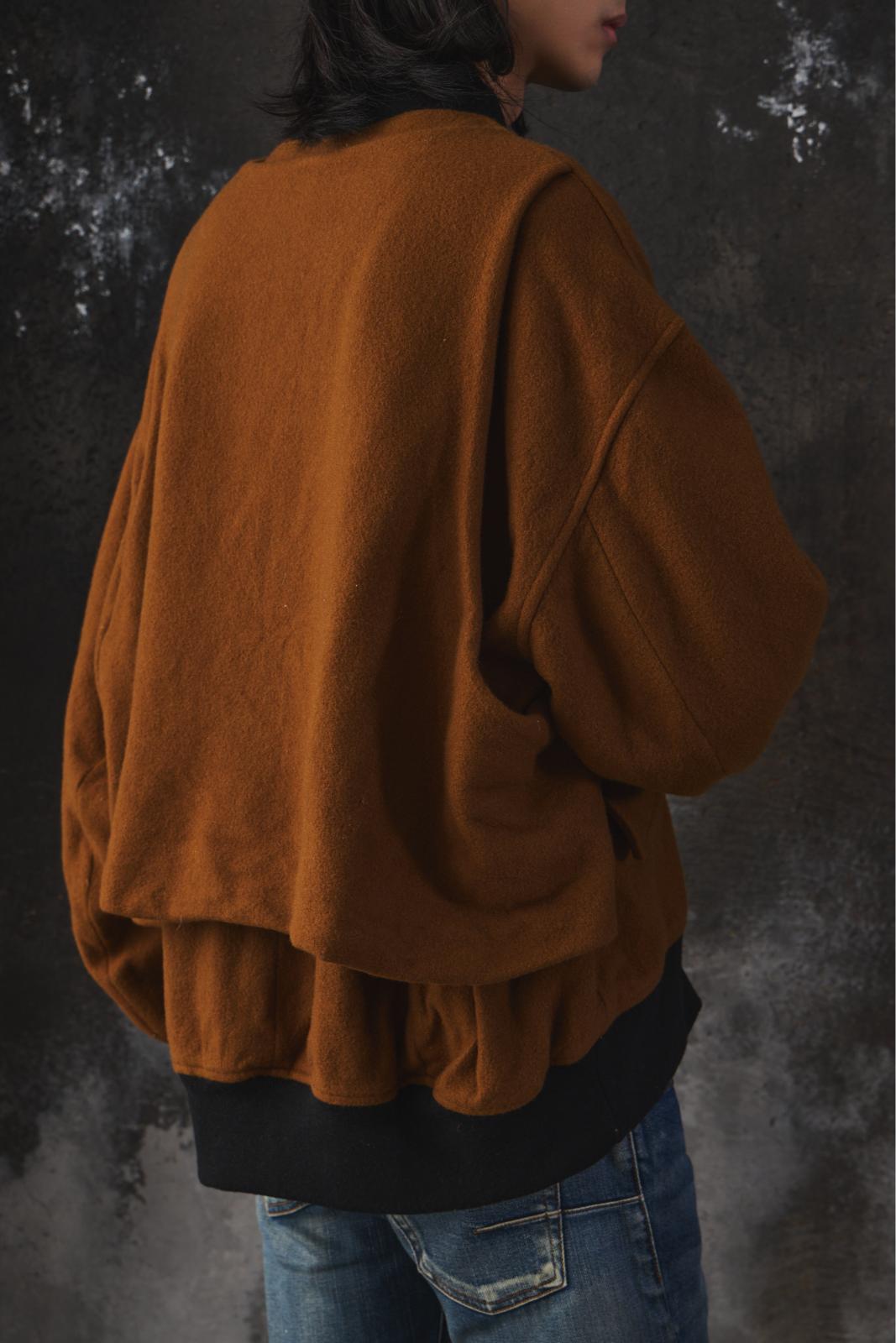 VOAAOV OVERSIZE WOOL BOMBER JACKET 日本設計品牌 棕色羊毛飛行員外套