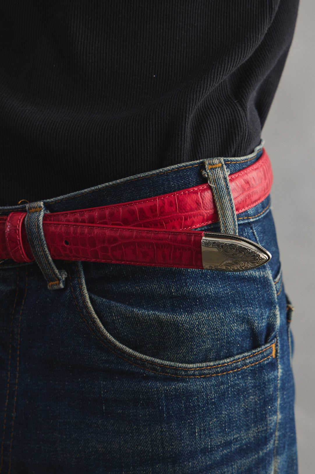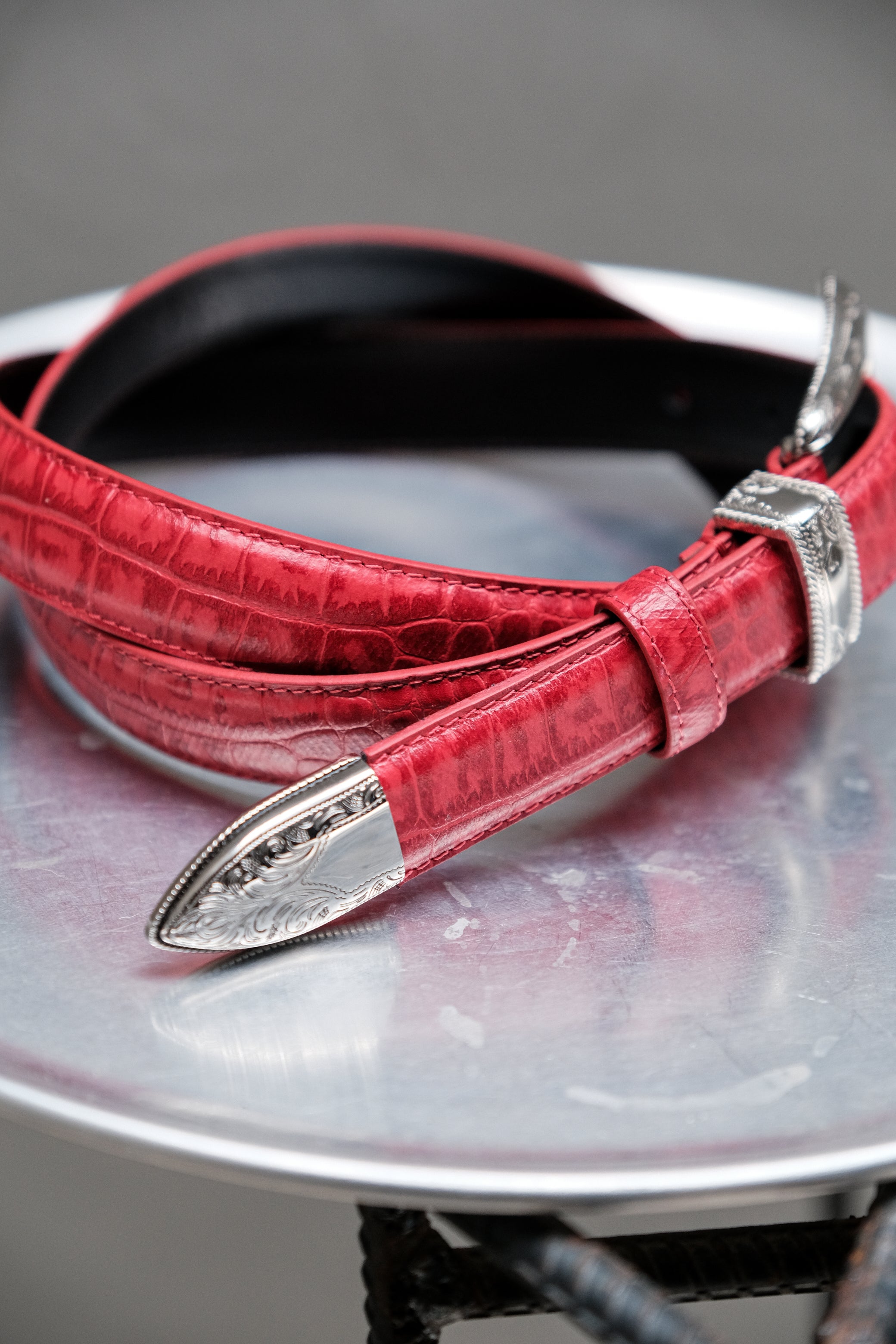 Western Buckle Red Croc Pattern Leather Belt 西部風格紅色鱷魚紋皮帶 全新品