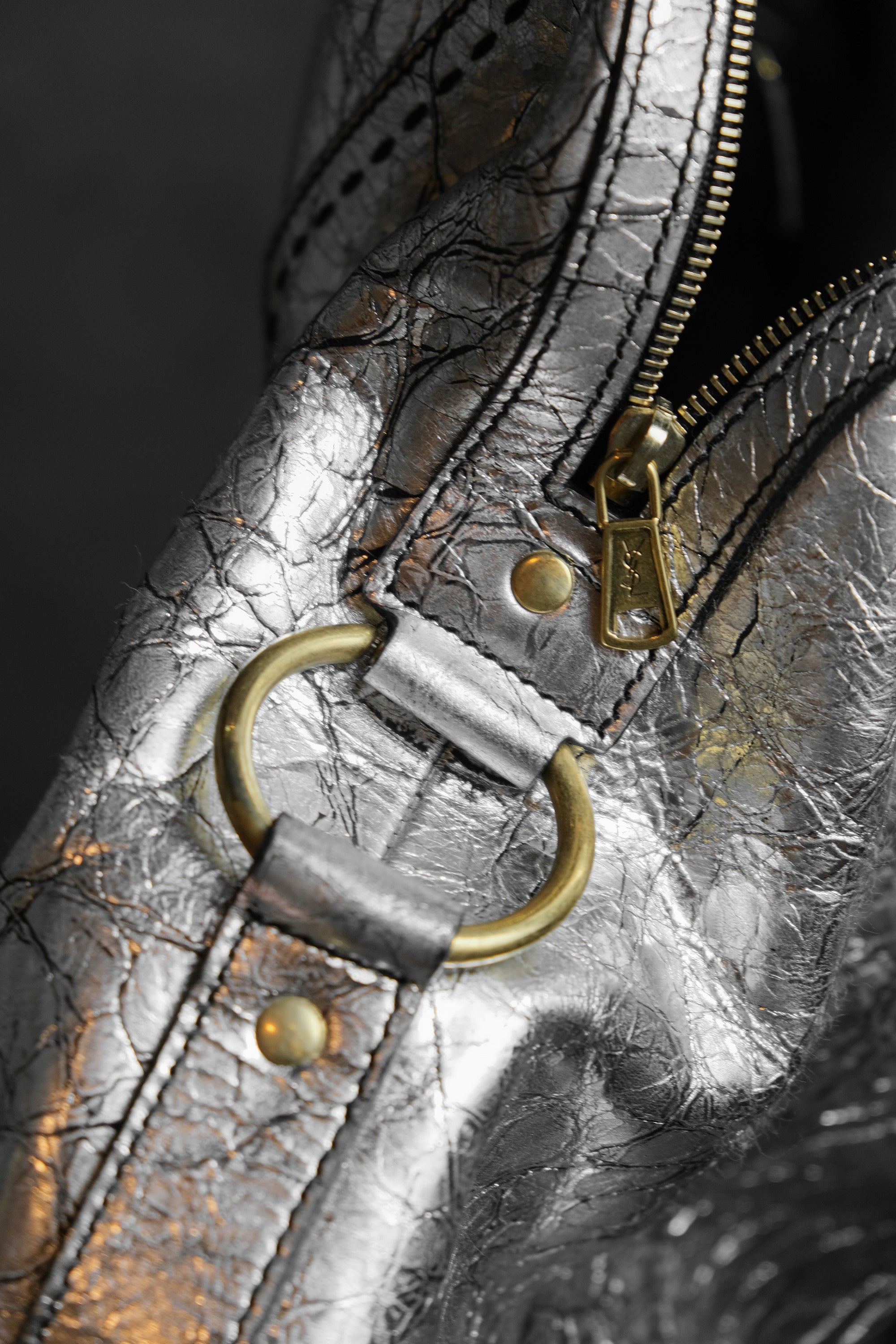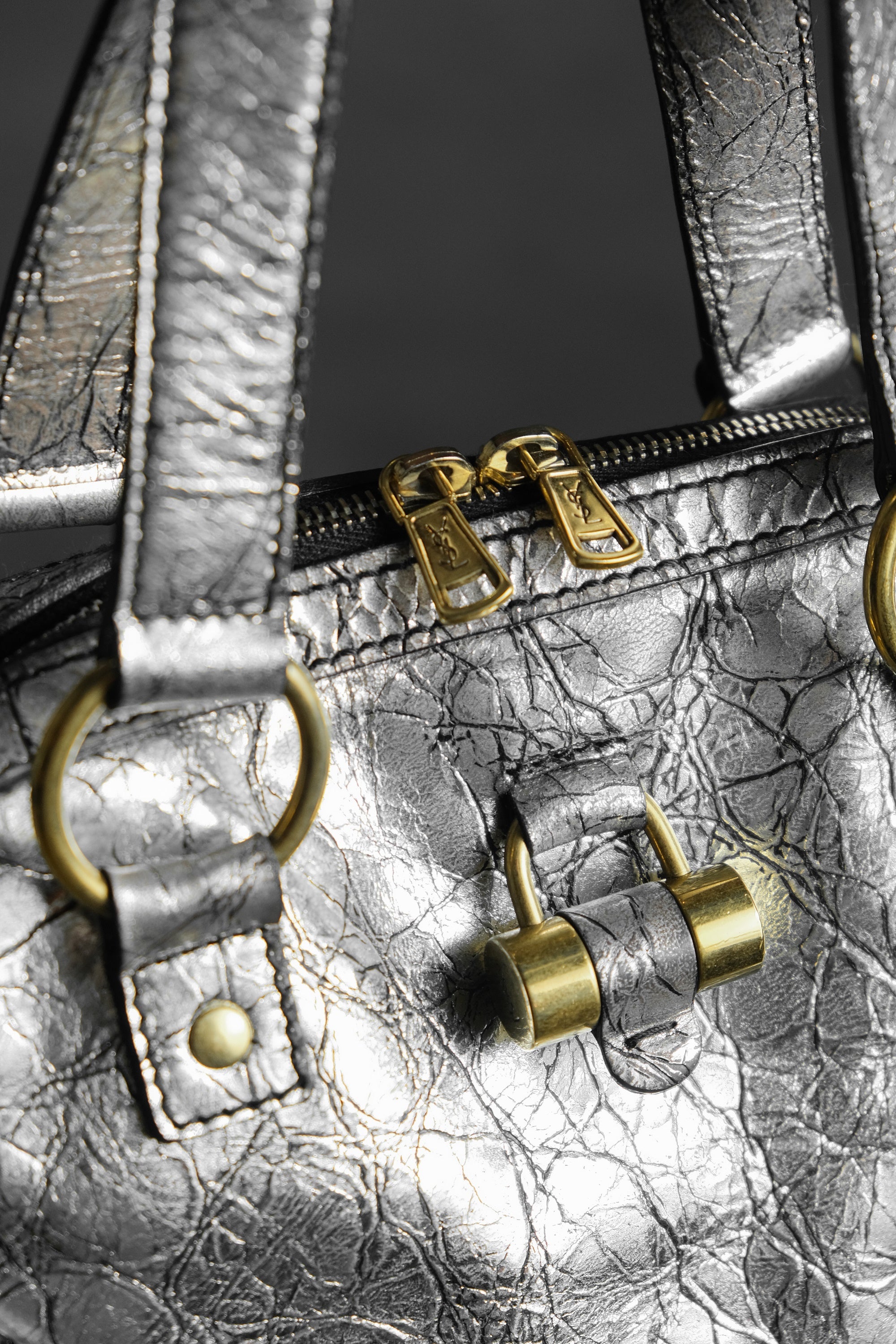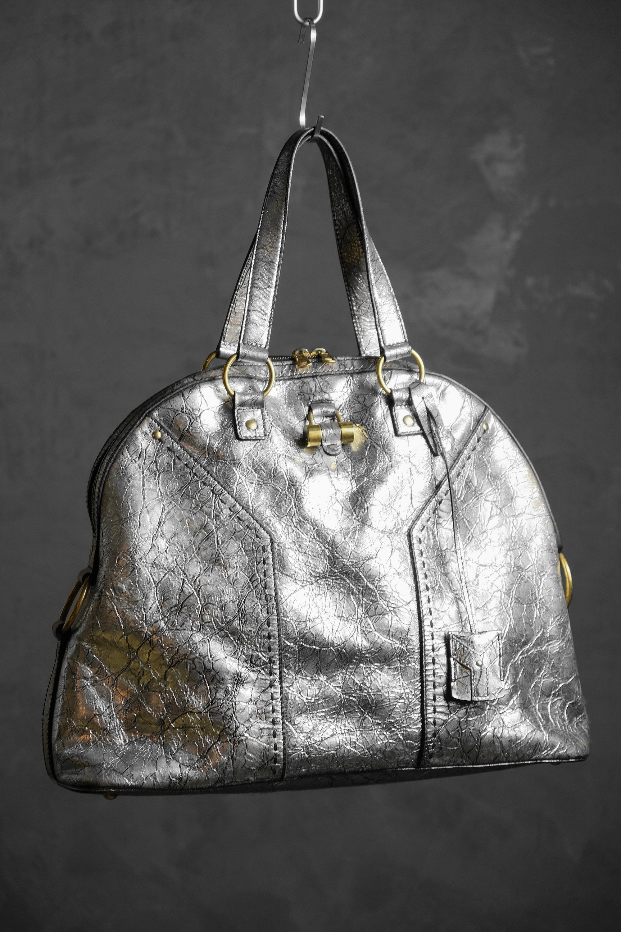 イヴ・サンローラン ミューズ レザー ショルダーバッグ YSL サンローラン シルバー バーストロック バッファローレザー ボウリングバッグ