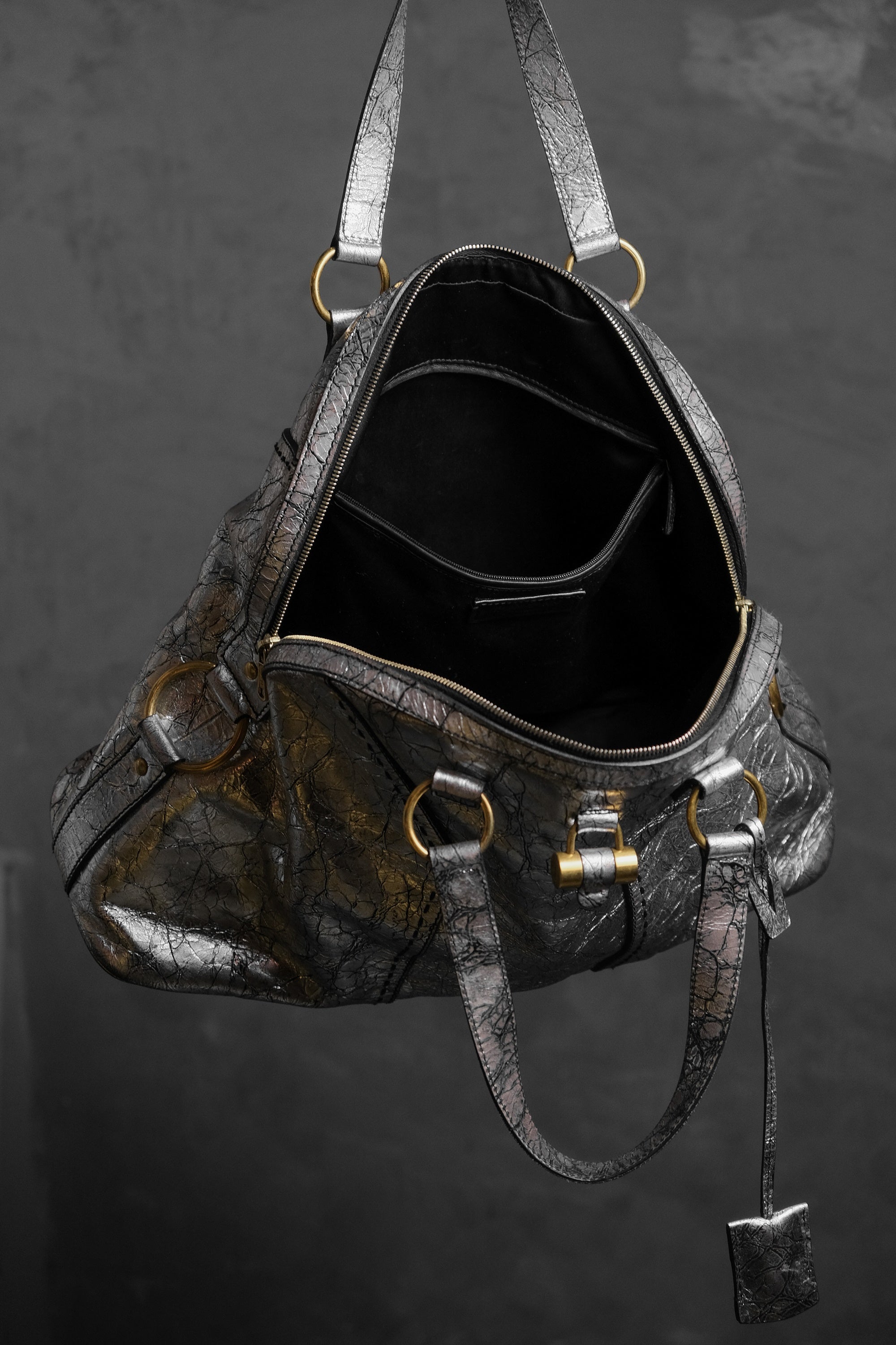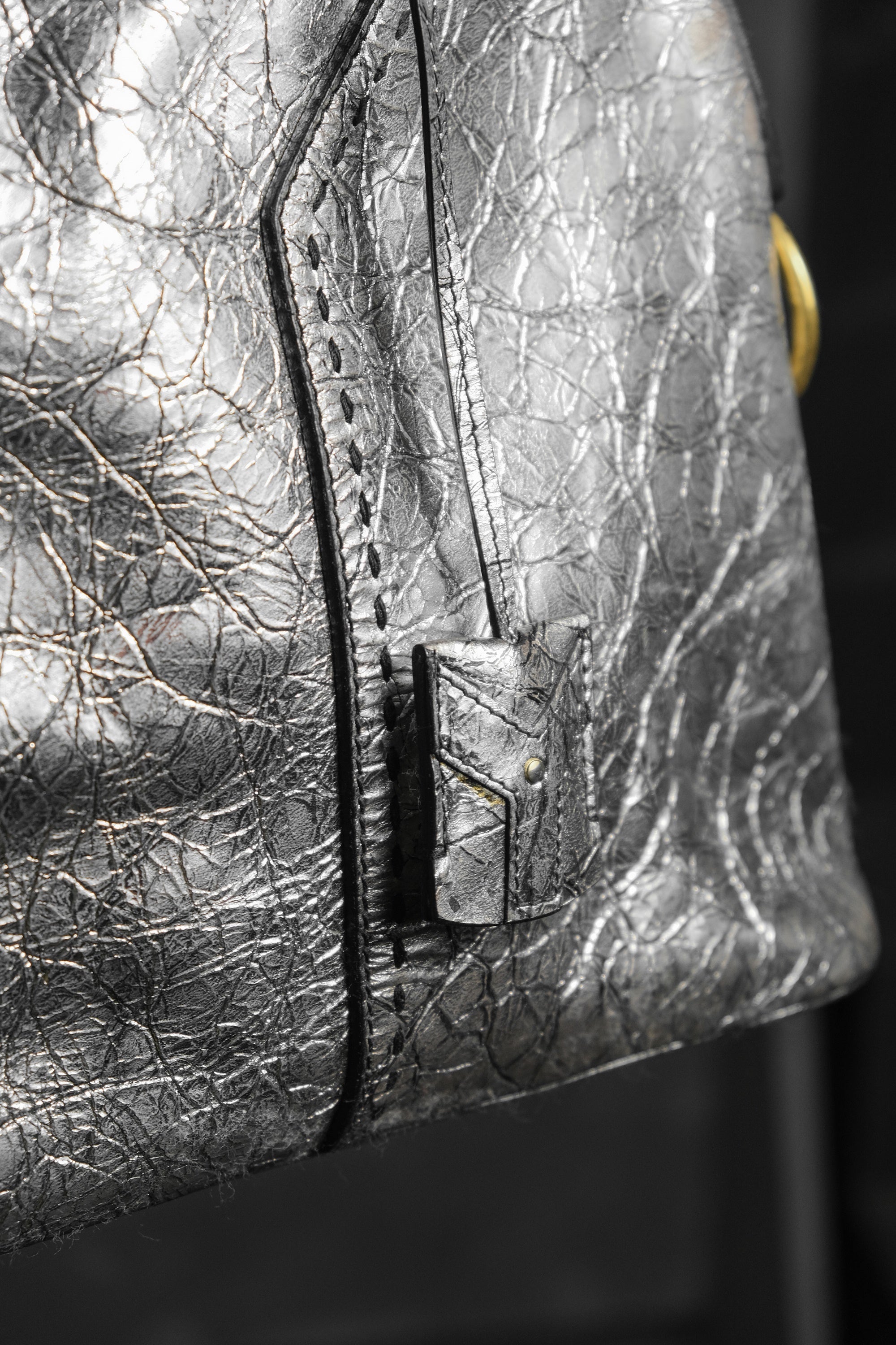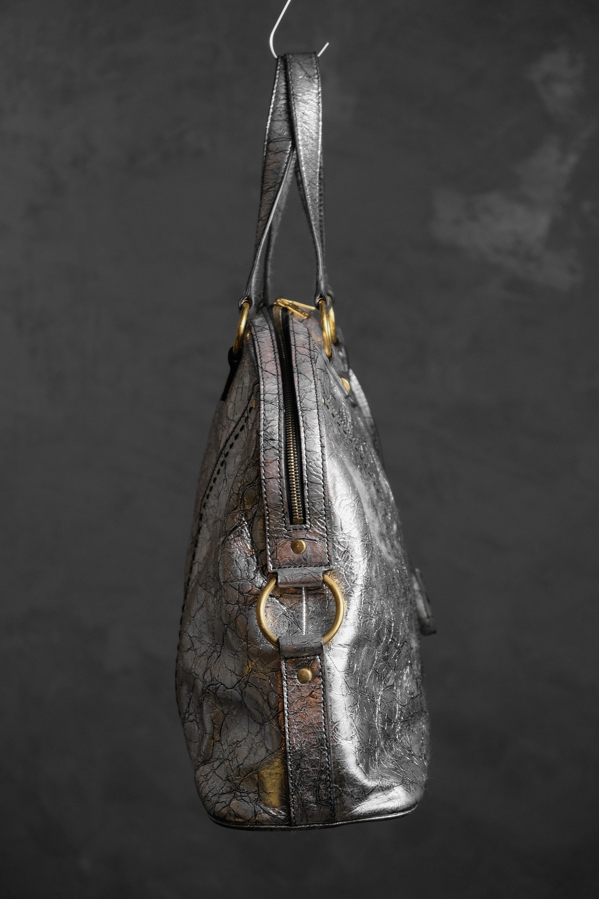 イヴ・サンローラン ミューズ レザー ショルダーバッグ YSL サンローラン シルバー バーストロック バッファローレザー ボウリングバッグ