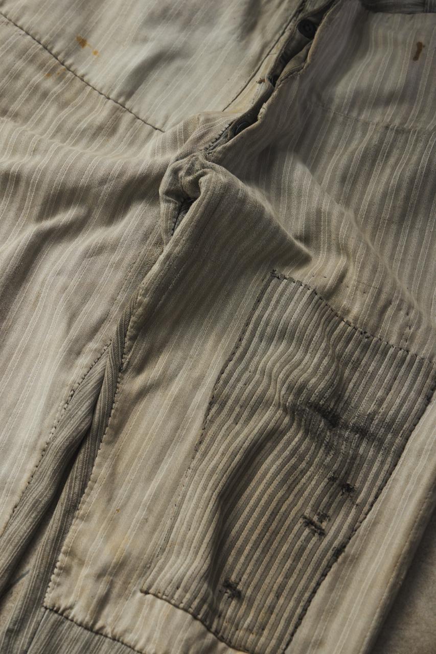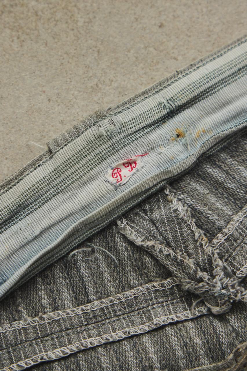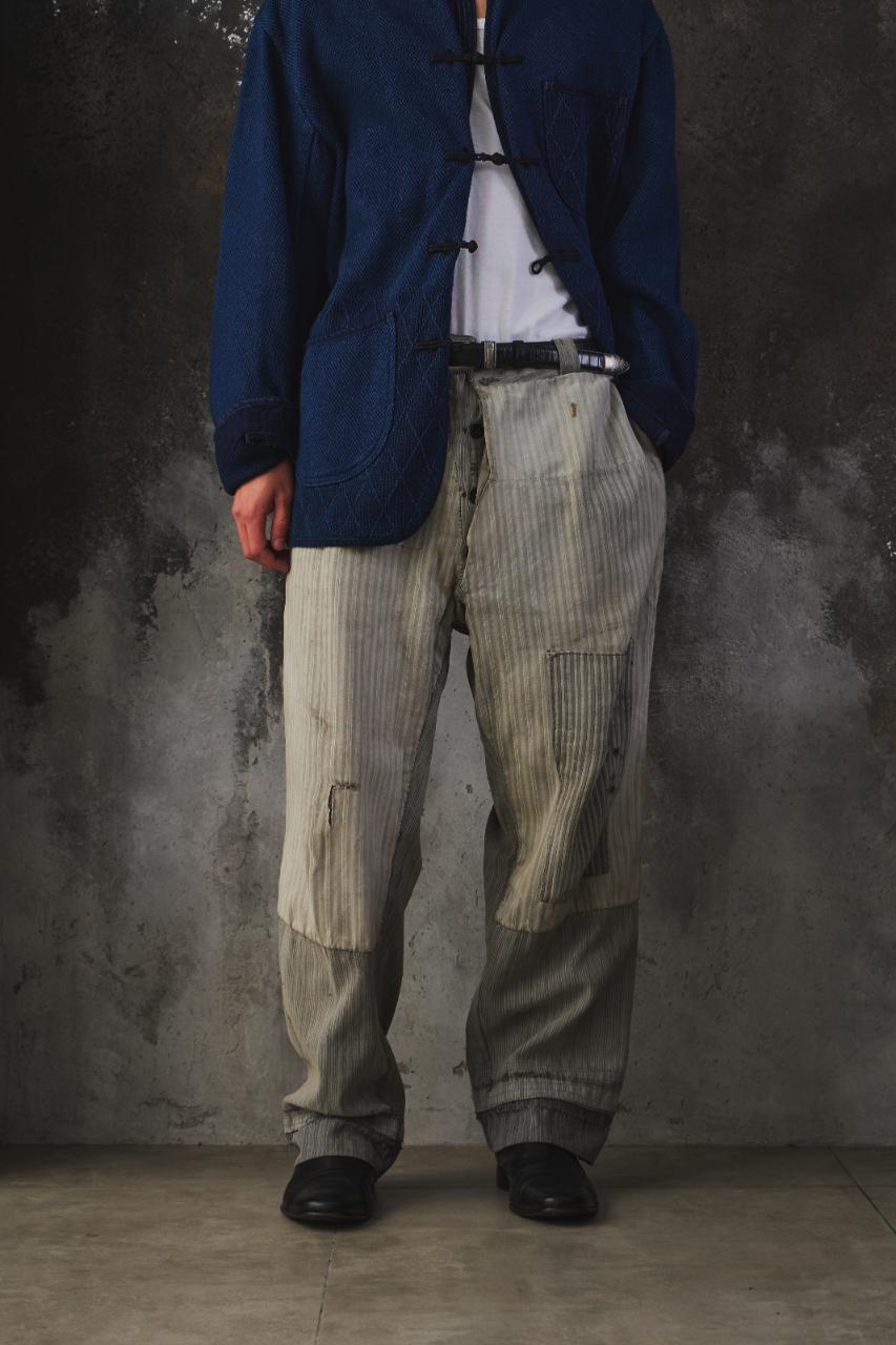 1940-50s Vintage French Pinstripe Patched Workwear Trousers Le Grand Condé Tag Distressed Archival Style 法國古著條紋補丁工裝長褲