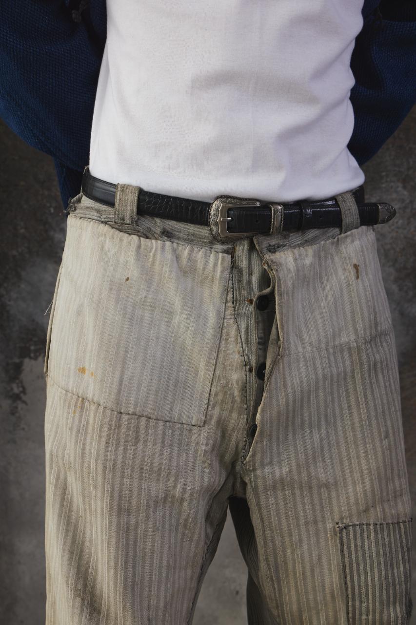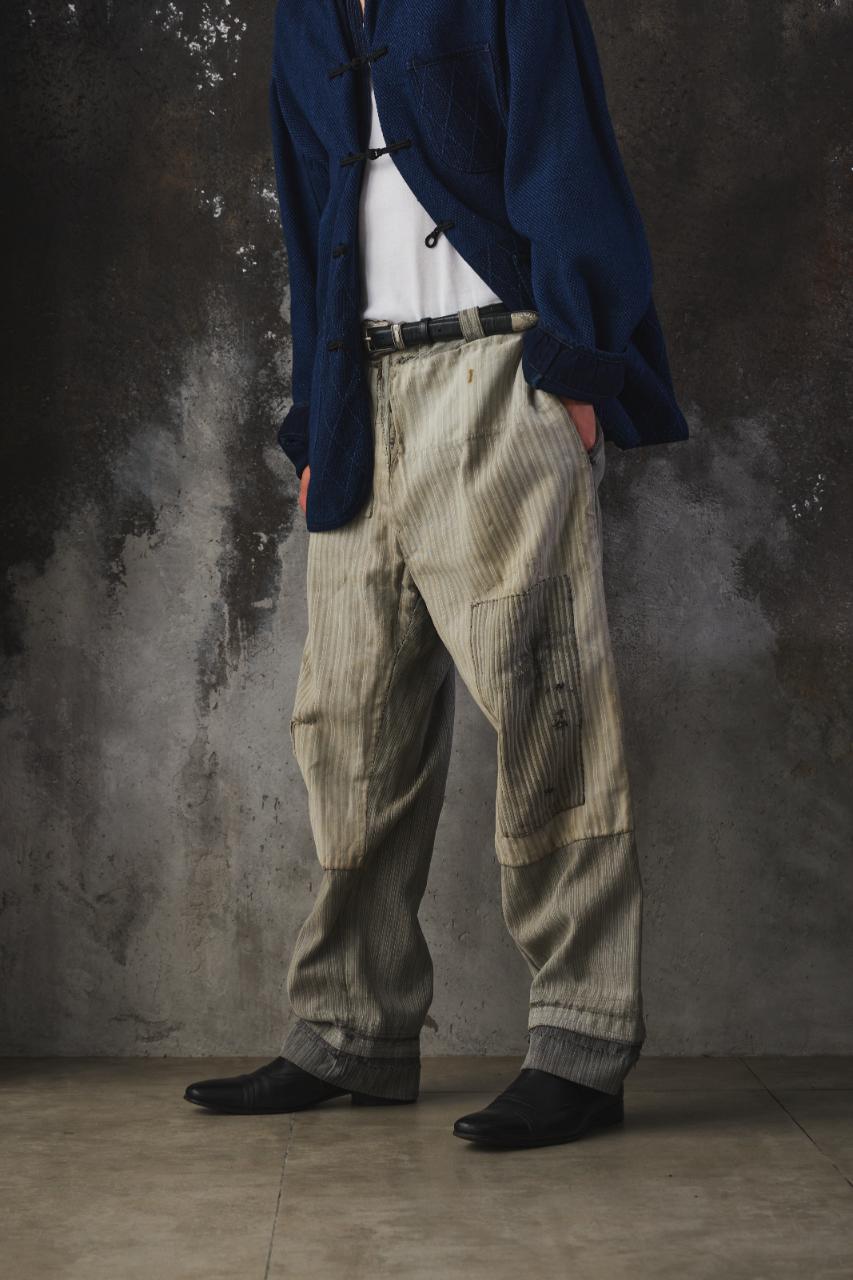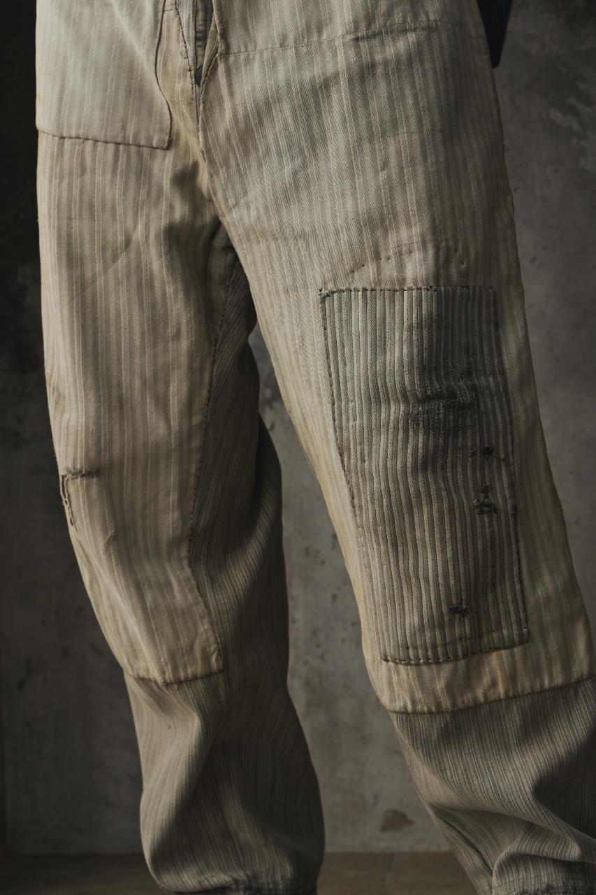 1940-50s Vintage French Pinstripe Patched Workwear Trousers Le Grand Condé Tag Distressed Archival Style 法國古著條紋補丁工裝長褲