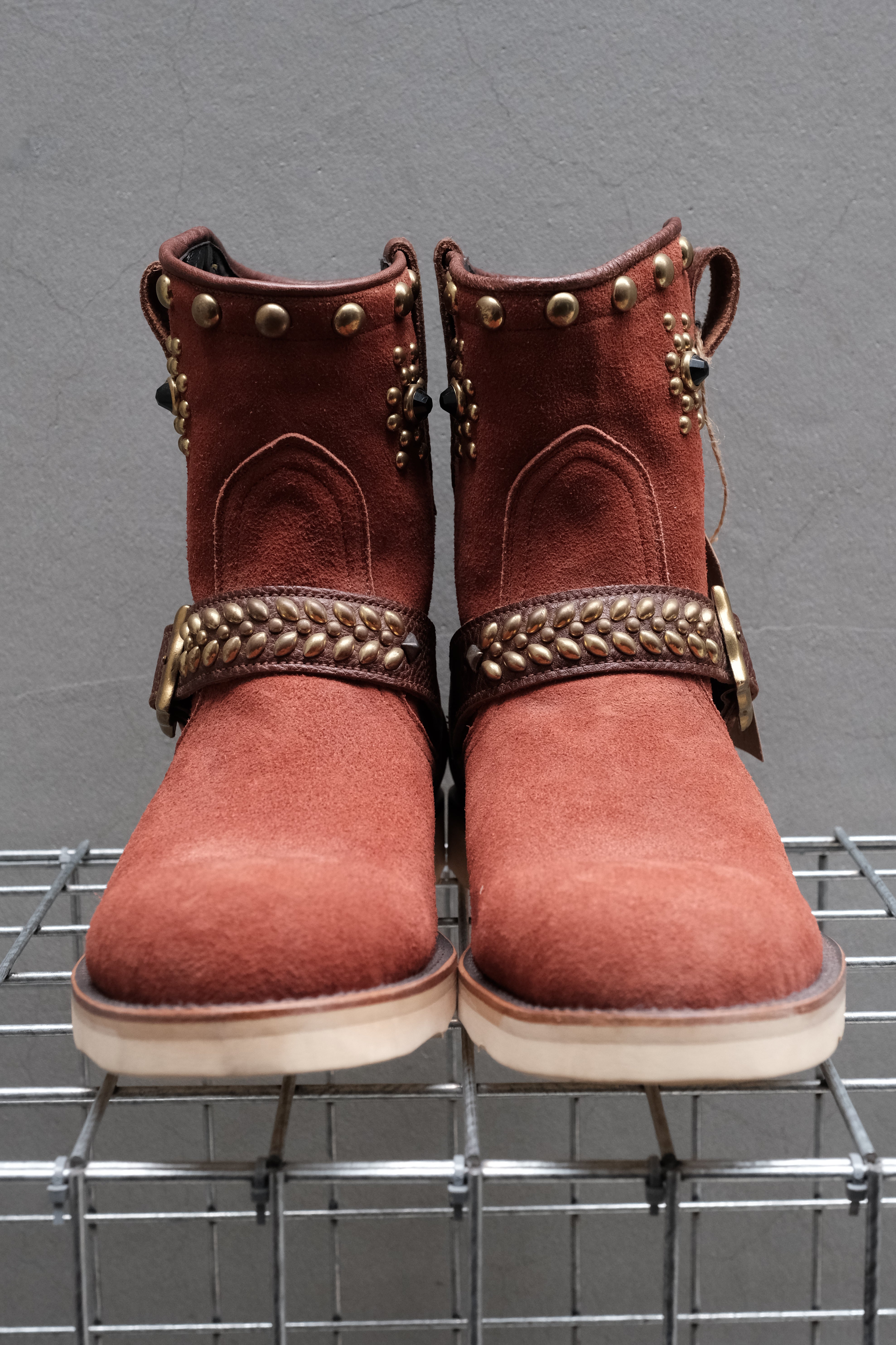 CALEE Studded Suede Leather Engineer Boots 酒紅色麂皮拼接牛皮鉚釘工程靴 Vibram 底 日本製