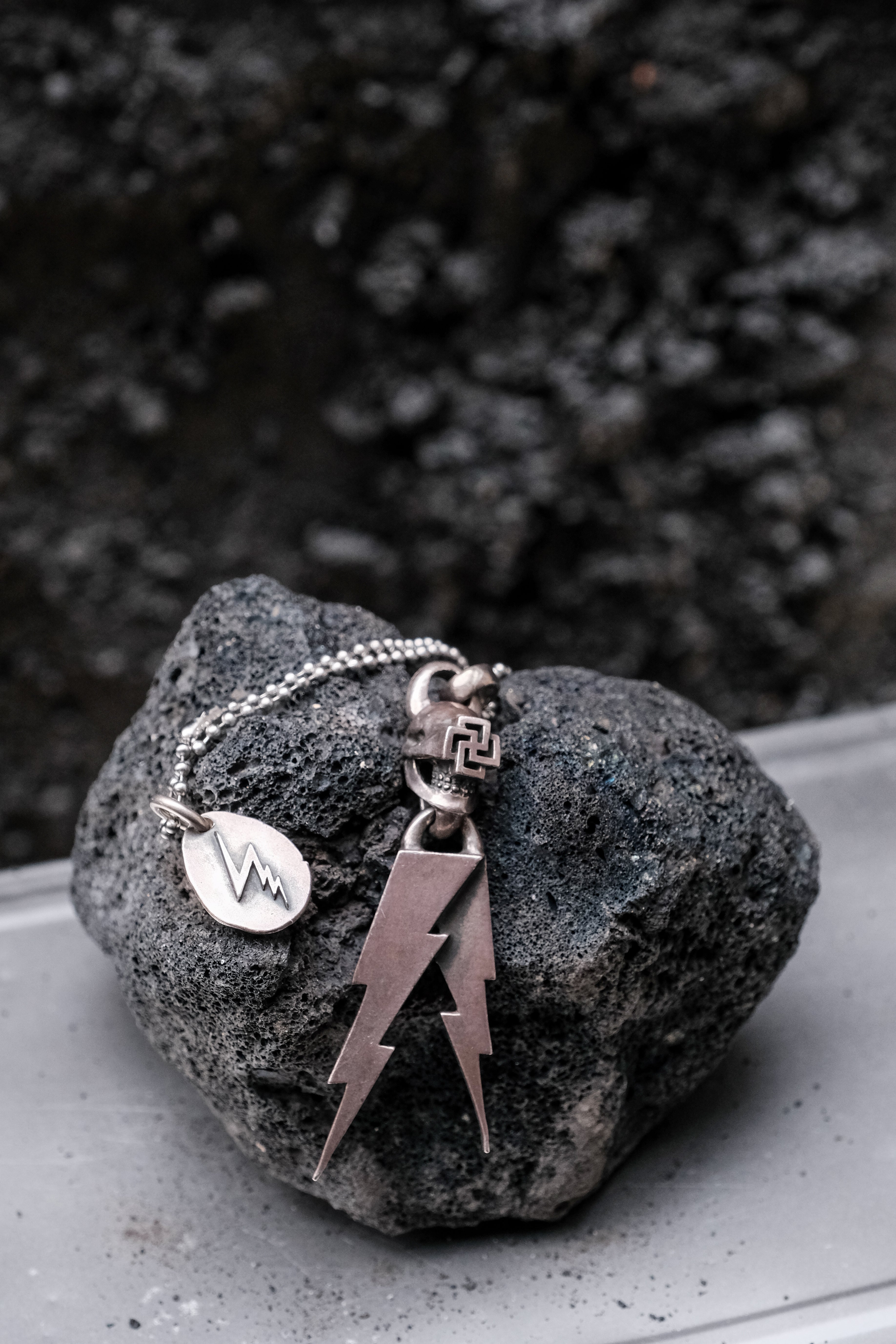 Fate Co Thumder Metal Top Lc Skull + Lightning Top 日本銀飾品牌 卍字獨眼骷顱頭閃電吊墜 閃電小銀牌 925純銀 附保卡