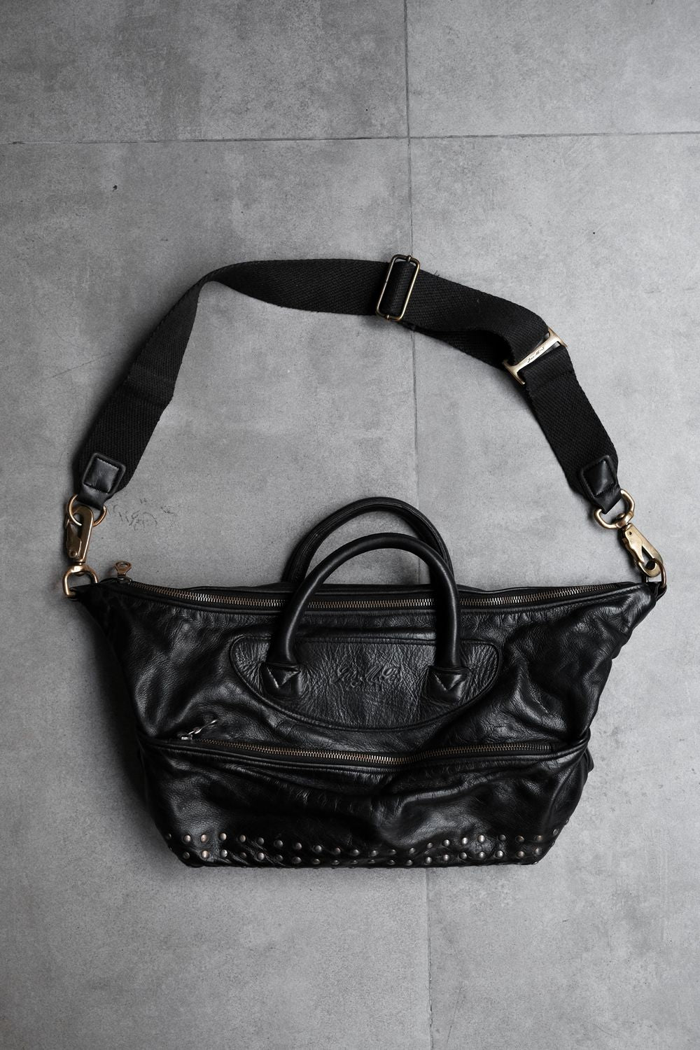 Jas-M.B. Leather Studded / Hand Bag 英國手工製包袋品牌 帆布背帶皮革鉚釘手提肩背包