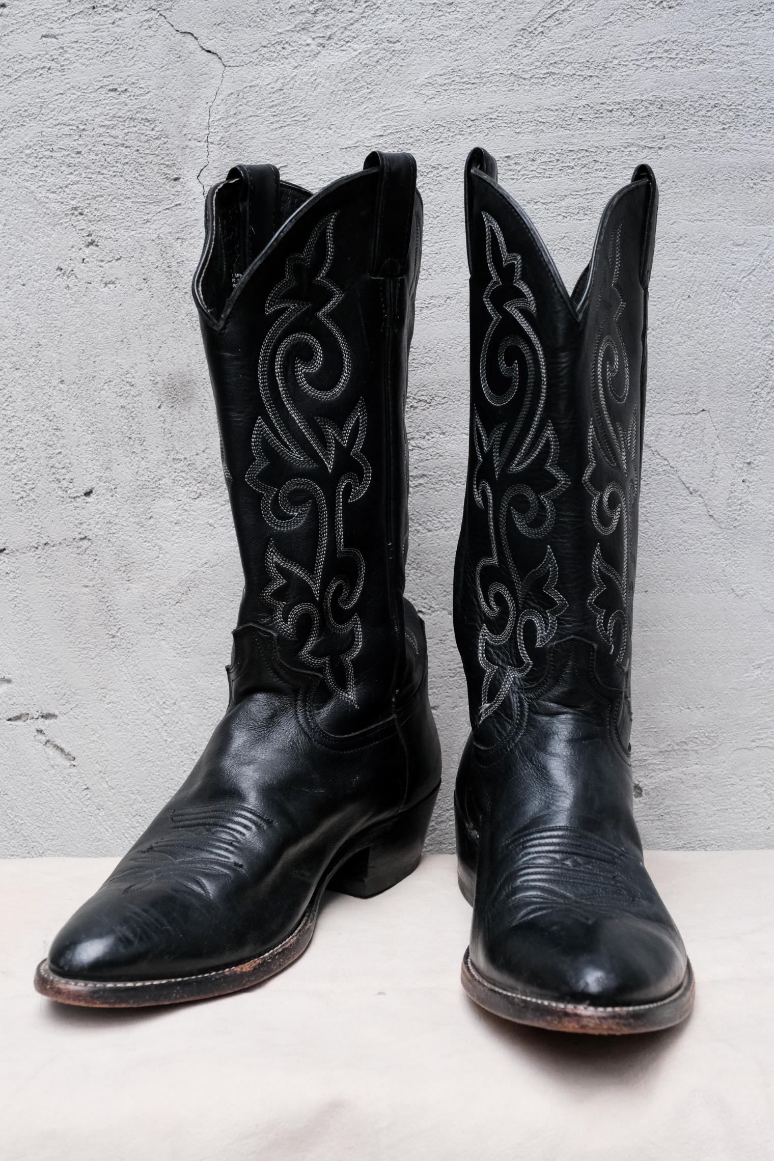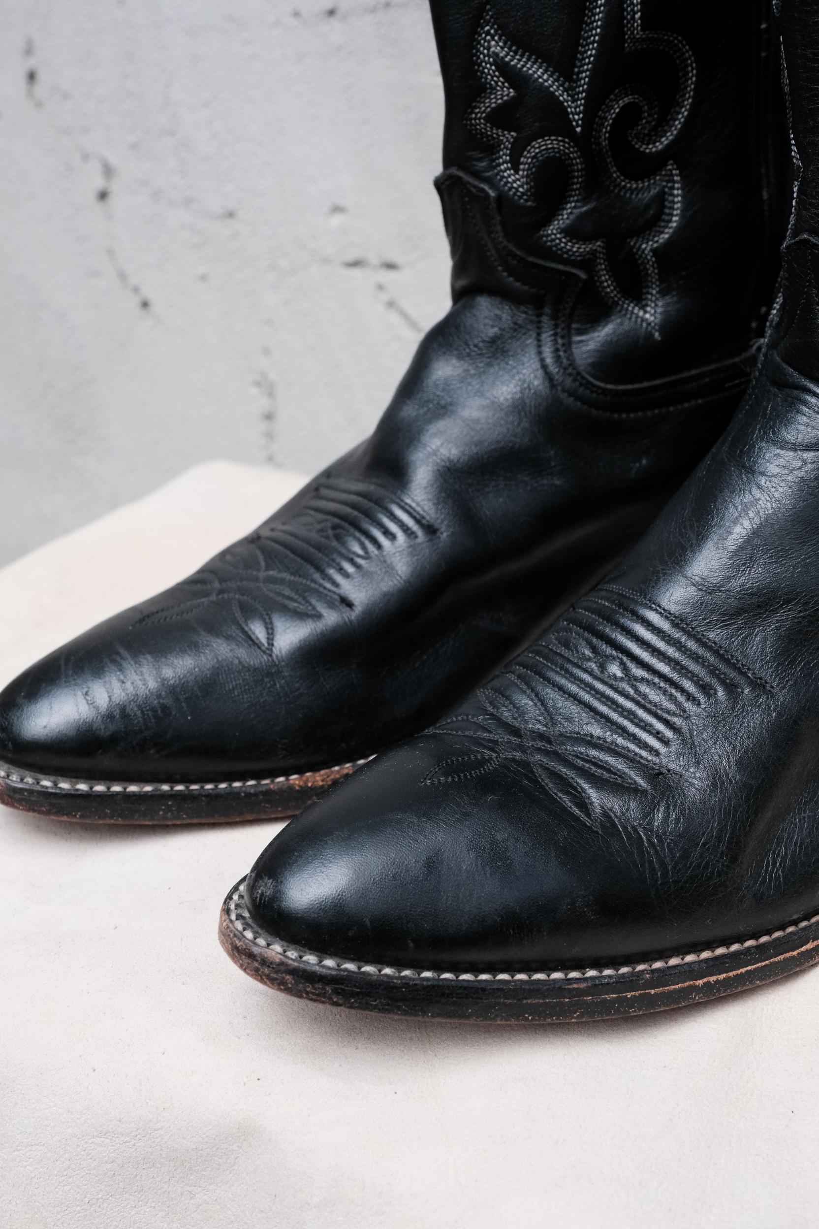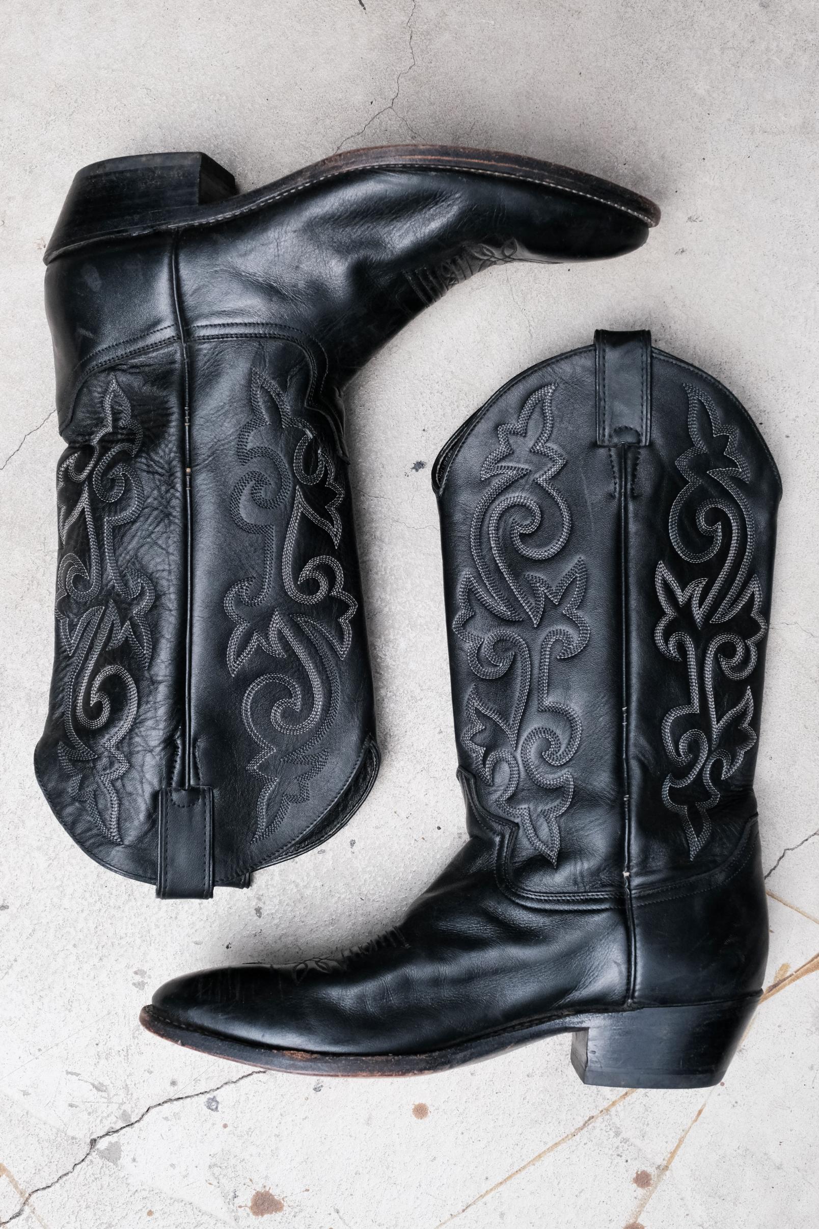 Justin Black Leather Embroidered Snip Toe Western Boots 黑色刺繡尖頭西部牛仔靴 墨西哥製