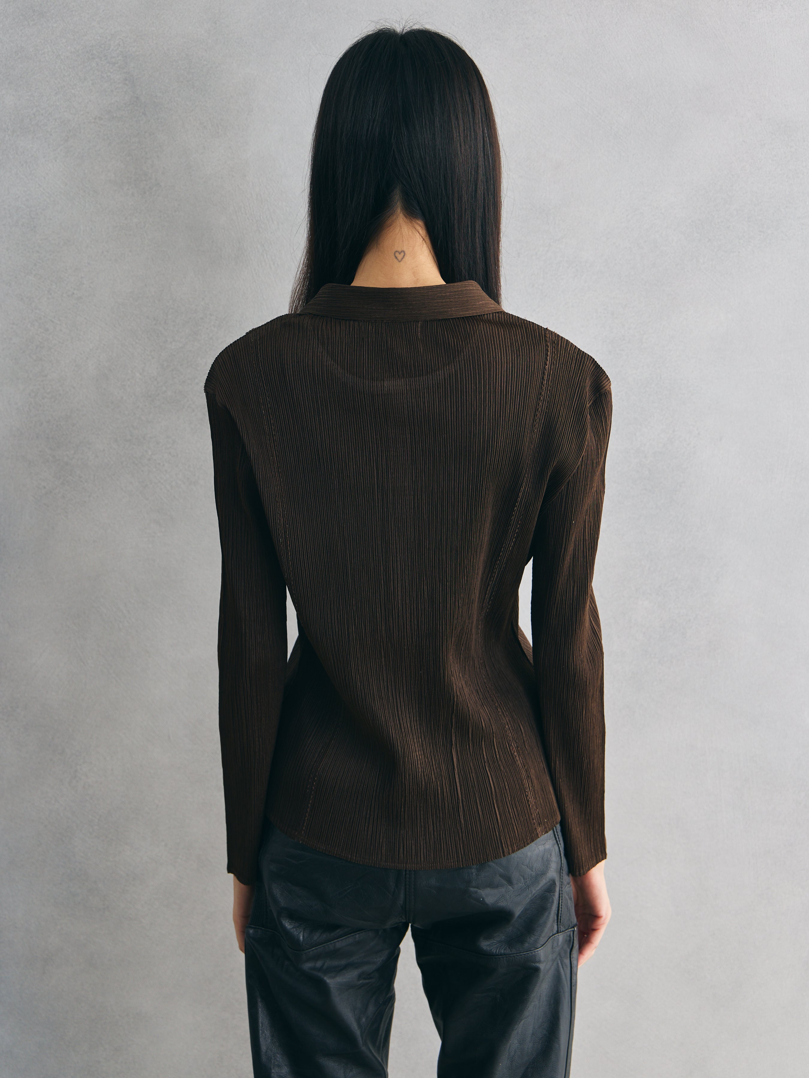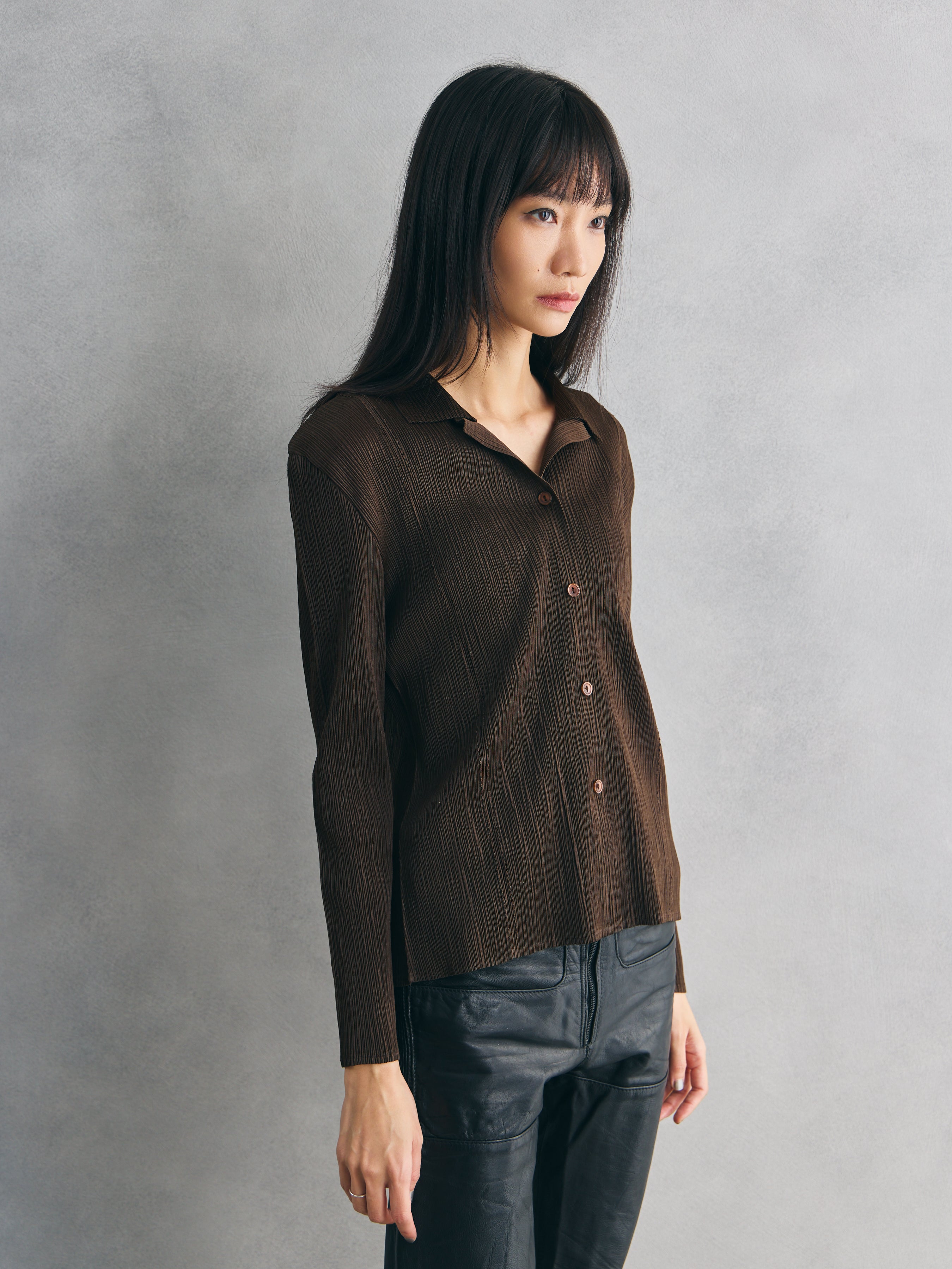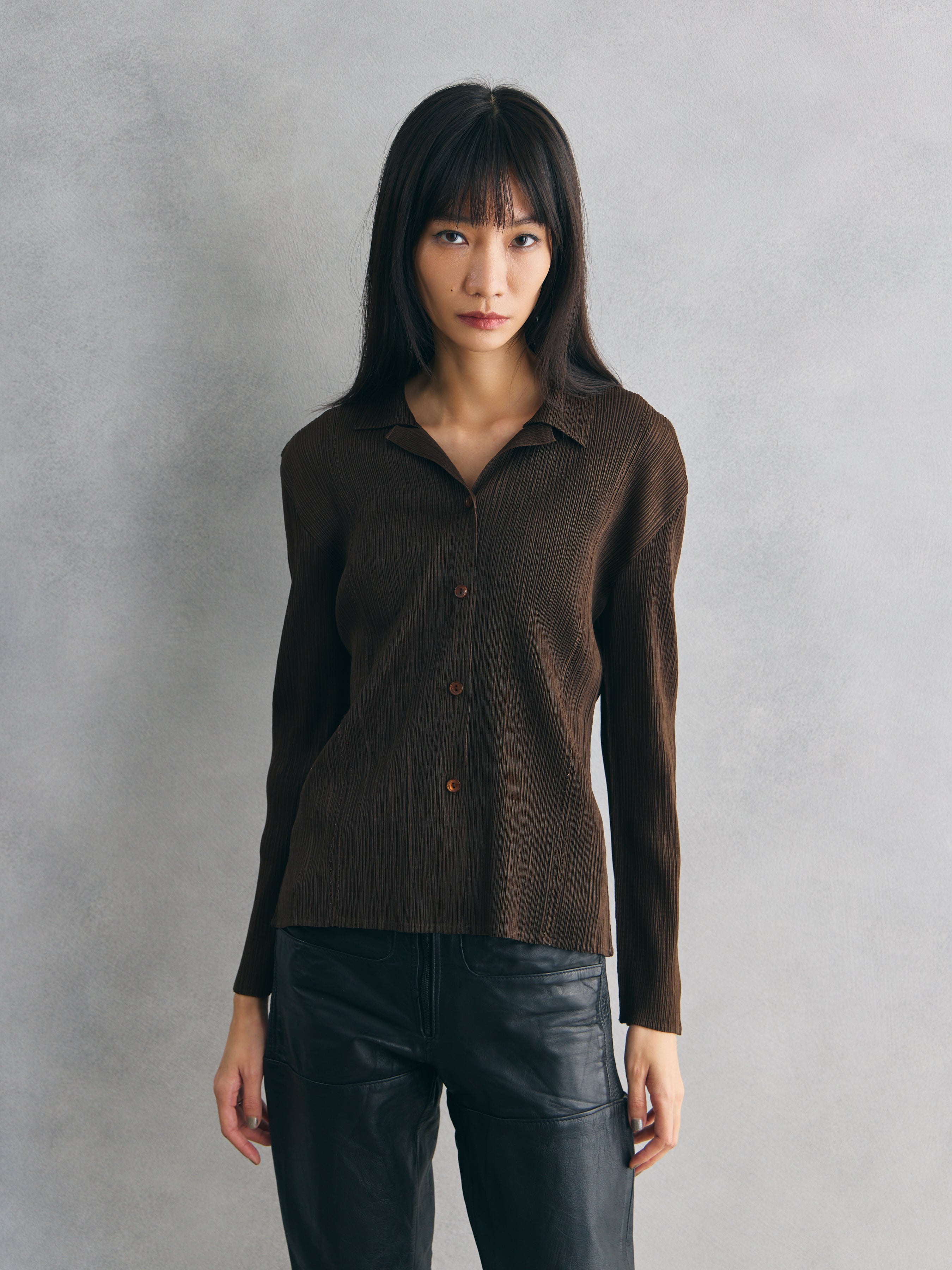 K.CHING Pleated Brown Long Sleeve Shirt 歐洲古著縐褶棕色長袖襯衫
