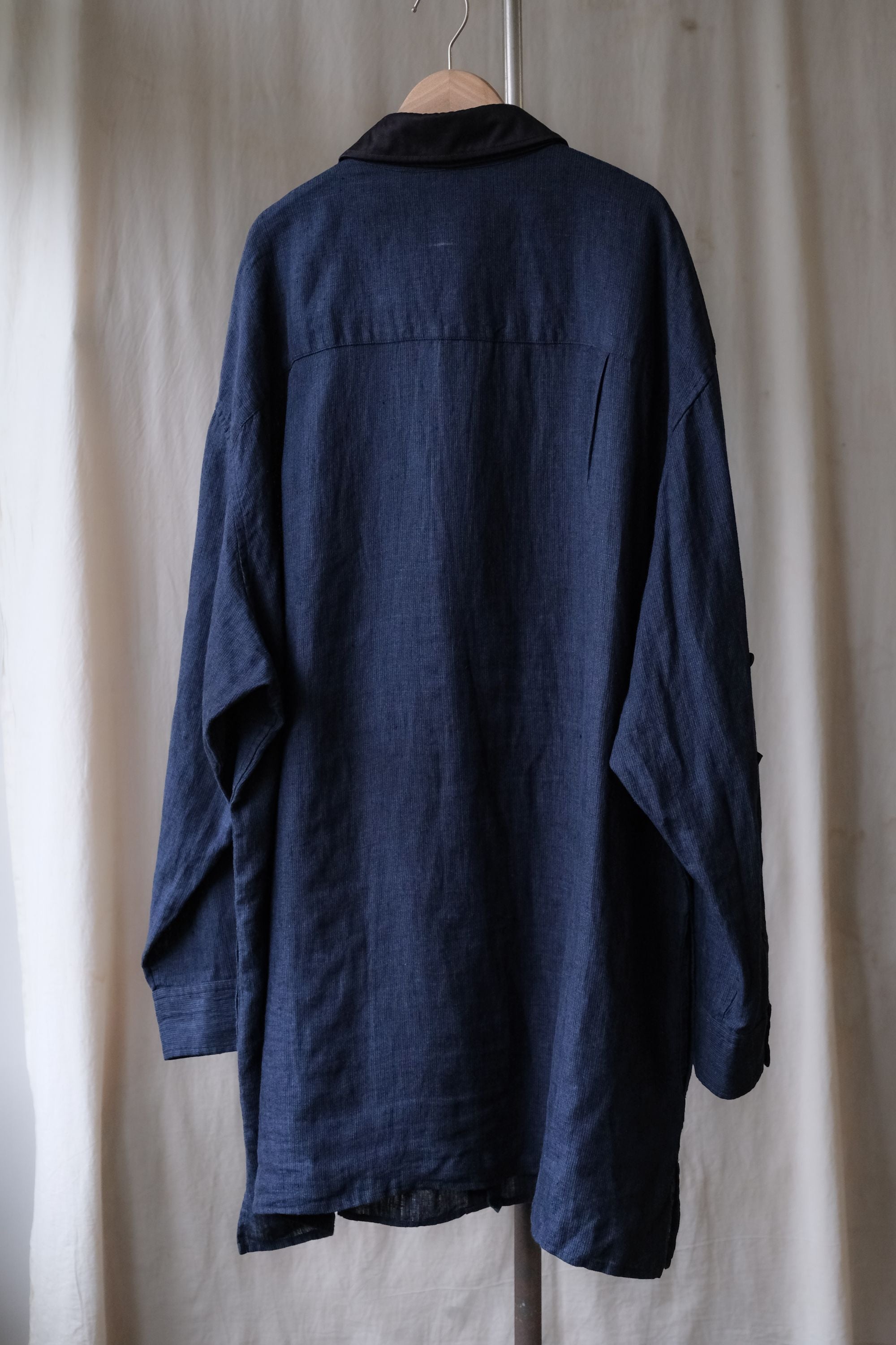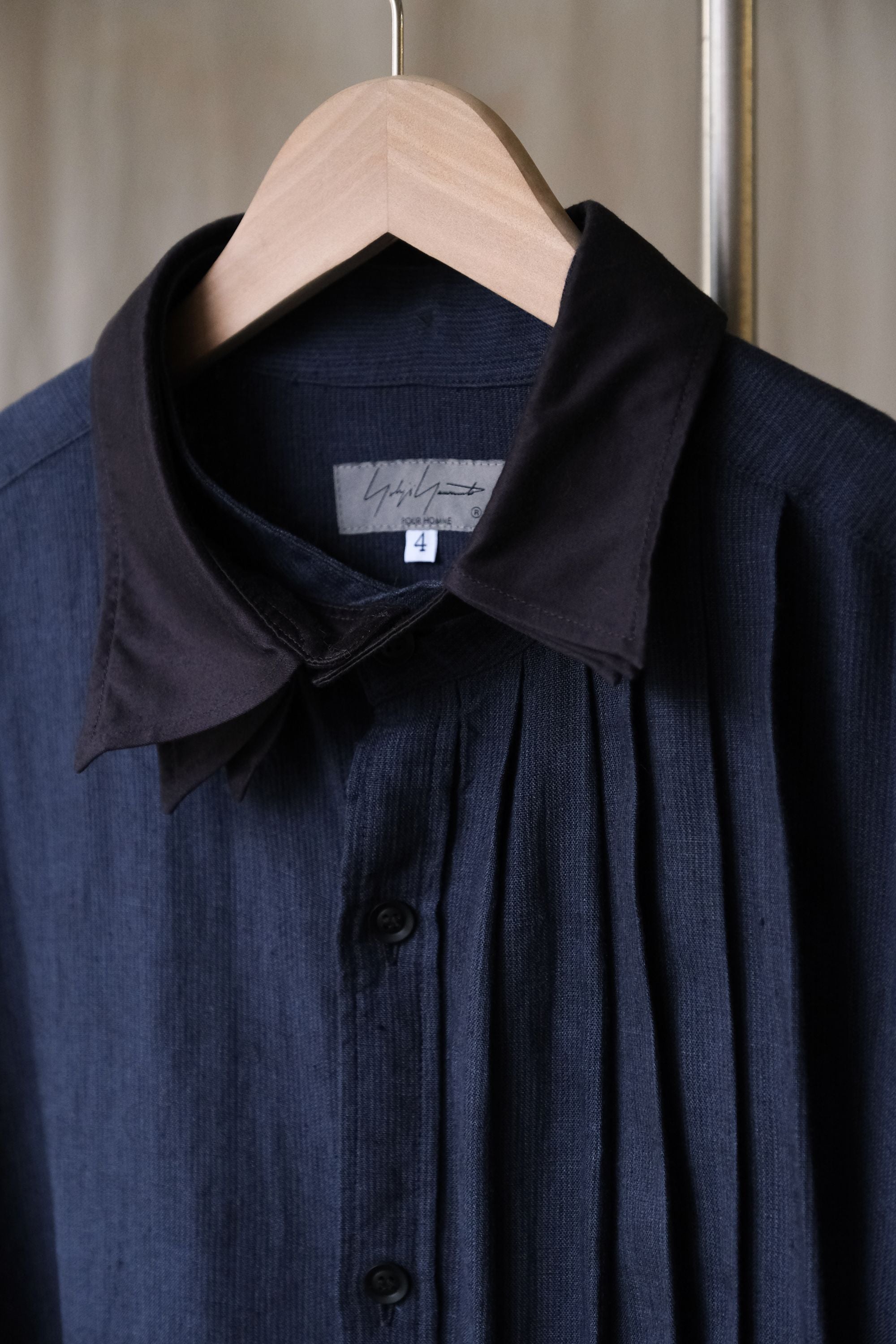 Yohji Yamamoto Pour Homme 23S/S Pleated Detail Linen Long Shirt Navy 山本耀司男裝主線 皺褶裝飾亞麻長版襯衫 可拆領